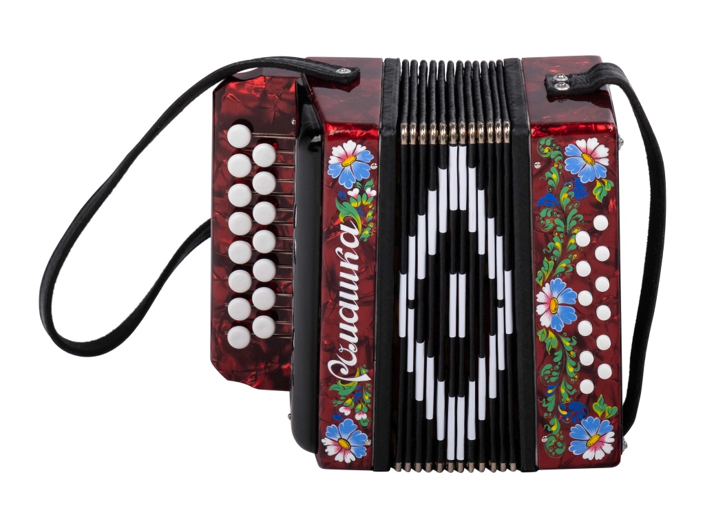 - Одноголосая гармонь без регистра, звукоряд основан на неполной хроматической гамме.