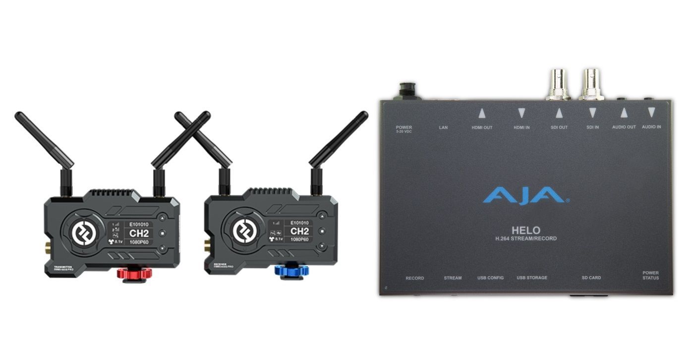 - Передавайте сигнал HDMI или 3G-SDI без проводов на расстояние до 120 метров напрямую в кодер AJA HELO.