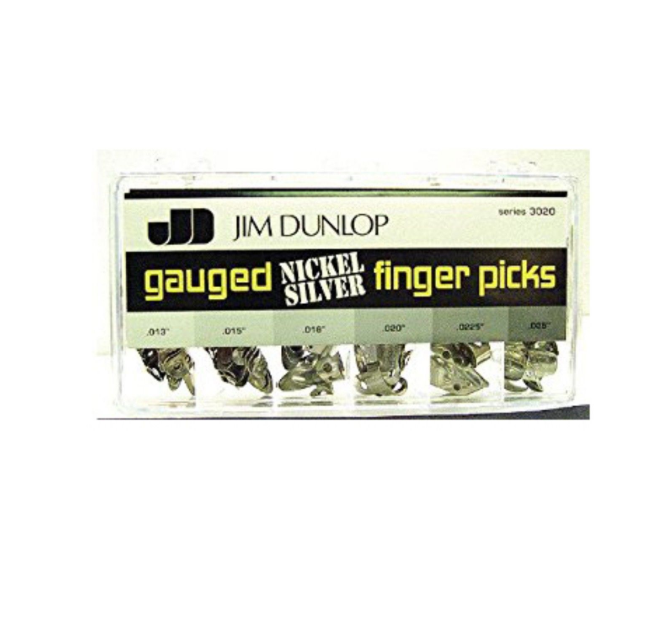 3020 Nickel Silver Коробка медиаторов на палец, 120шт, нейзильбер, 6 толщин, Dunlop