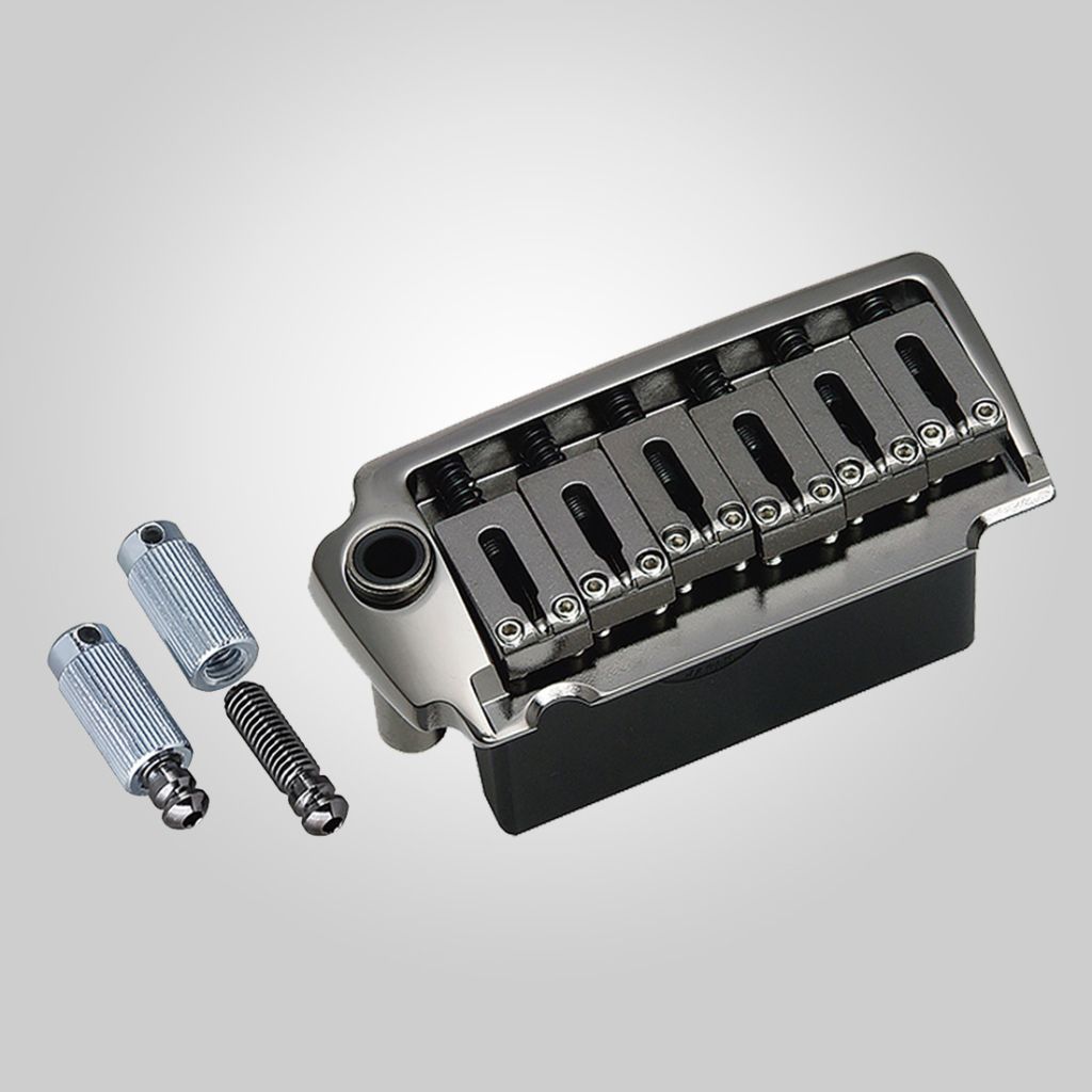 Есть Тип 6 точек поворота, такой же, как синхронизированный стиль, и тип анкерной гайки 2 точки поворота, который включает в себя замок шпильки (PAT.)* Кроме того, оригинальная функция FST GOTOH (PAT.) между седлом и шариковым концом, удерживает струны от соприкосновения с пластиной. Благодаря им значительно улучшается способность устройства возвращаться к настройке при использовании рычага тремоло. 510ts поставляется в стандартной комплектации с популярным стальным блоком.