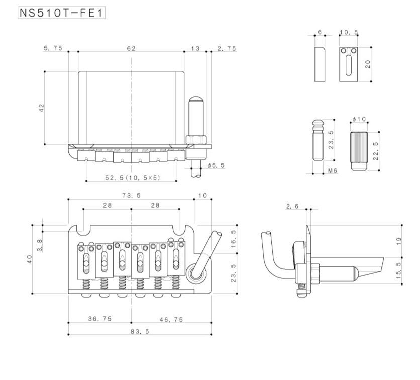 NS510T-FE1-C Бридж (струнодержатель) тремоло, хром, Gotoh
