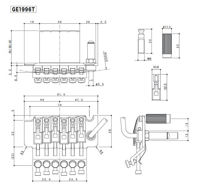 NS510TS-FE2-B Бридж (струнодержатель) тремоло, черный, Gotoh