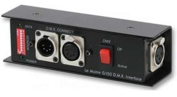 Интерфейс DMX является заменяющим модулем для стандартного пульта дистанционного управления G150 и дополнительным оборудованием для Neutron Hazer, для активации протокола DMX и контроля выпуска дыма/тумана, (в том числе разнообразных потоков в случае G150), через один канал. Соединение между модулем и G150/Дым-машиной через стандартный XLR шнур