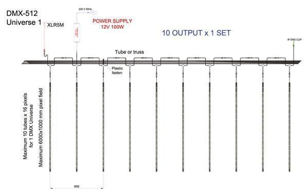 STAGE4 MAPIX dmx TUBE 16*100 Комплект для создания светодиодного графического "потолка" и 3D пиксельных эффектов. Комплект управляется 1-им DMX потоком