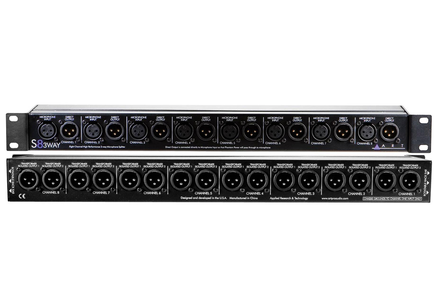 ART S8 8-канальный стоечный микрофонный сплиттер. Идеально подходит для передачи вторичного сигнала микрофона к микшеру монитора, устройству записи и т.д. S8 имеет восемь XLR входов и 16 выходов. Восемь прямых выходов проходят фантомное питание микрофона и предназначены, чтобы питать основные предусилители, смеситель входов или других устройств ввода. -29 дБ выключатель входа Pad предусмотрен на каждом канале. Переключатели Ground Lift устраняет шум контура заземления, вызванные подключенными устройствами.