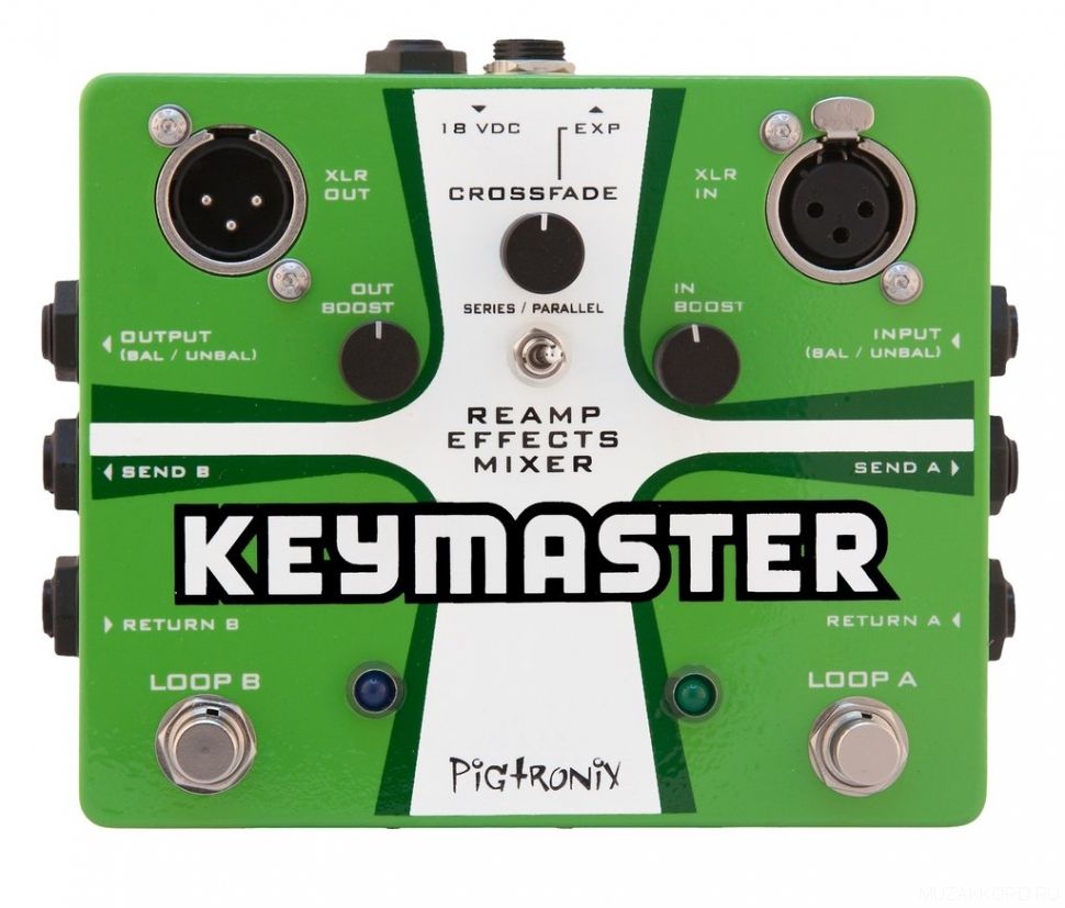 PIGTRONIX REM Keymaster Reamp Effects Mixer - двойная петля эффектов с пассивным обходом, причем обе петли могут работать как параллельно, так и последовательно. Это интуитивное устройство подходит по импедансу к любому гитарному оборудованию и может маршрутизировать любой сигнал в педали и обратно, а потом направлять его куда вам угодно. Keymaster открывает новый мир тонального разнообразия в тех педалях, которые уже у вас есть. Keymaster позволяет музыканту делать кроссфейд между различными эффектами или даже между двумя педалбордами при помощи стандартной педали экспрессии, а так же добавлять функцию подмешивания сигнала при помощи педали экспрессии вашему любимому дилею или любому другому эффекту. Музыкант может постепенно выключать педали для плавного перехода между эффектами. Так же можно смешивать две педали перегруза между собой в параллельном режиме, чтобы достичь максимально плотной "стены звука". В студии Keymaster представляет собой идеальное решение для реампинга, которым могут пользоваться те звукорежиссеры, которые хотят пропустить линейный сигнал с микшерного пульта через эффекты, а затем в усилитель или назад в консоль - и все это с помощью единственного, очень простого в использовании интерфейса, обладающего как балансными (XLR), так и небалансными (джек 1/4") входами и выходами. Keymaster так же подойдет и вокалистам или духовикам, желающим манипулировать эффектами на сцене, давая возможность немедленно подмешивать чистый голос к любому эффекту, включая обход одного из каналов. Pigtronix Keymaster всегда готов дать вам возможность создавать новые звуки с привычным для вас оборудованием.