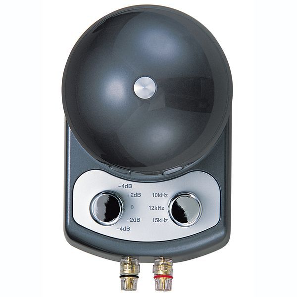 В супертвитере используется специальный ленточный излучатель с круговой диафрагмой, имеющий рабочий диапазон частот до 53 кГц и подключается через собственный кроссовер. Последний имеет регулируемую частоту среза (10, 12, 15 кГц), что позволяет гибко настраивать ELAC 4PI PLUS.2 в зависимости от характеристик основных АС. Корпус излучателя имеет круглую форму и выполнен из металла со специальным демпфированием для подавления резонансов. Для подключения кабелей предназначены надежные винтовые разъемы, также на задней панели имеется два переключателя для регулировки частоты настройки фильтра и величины чувствительности АС (от -4 до +4 дБ).