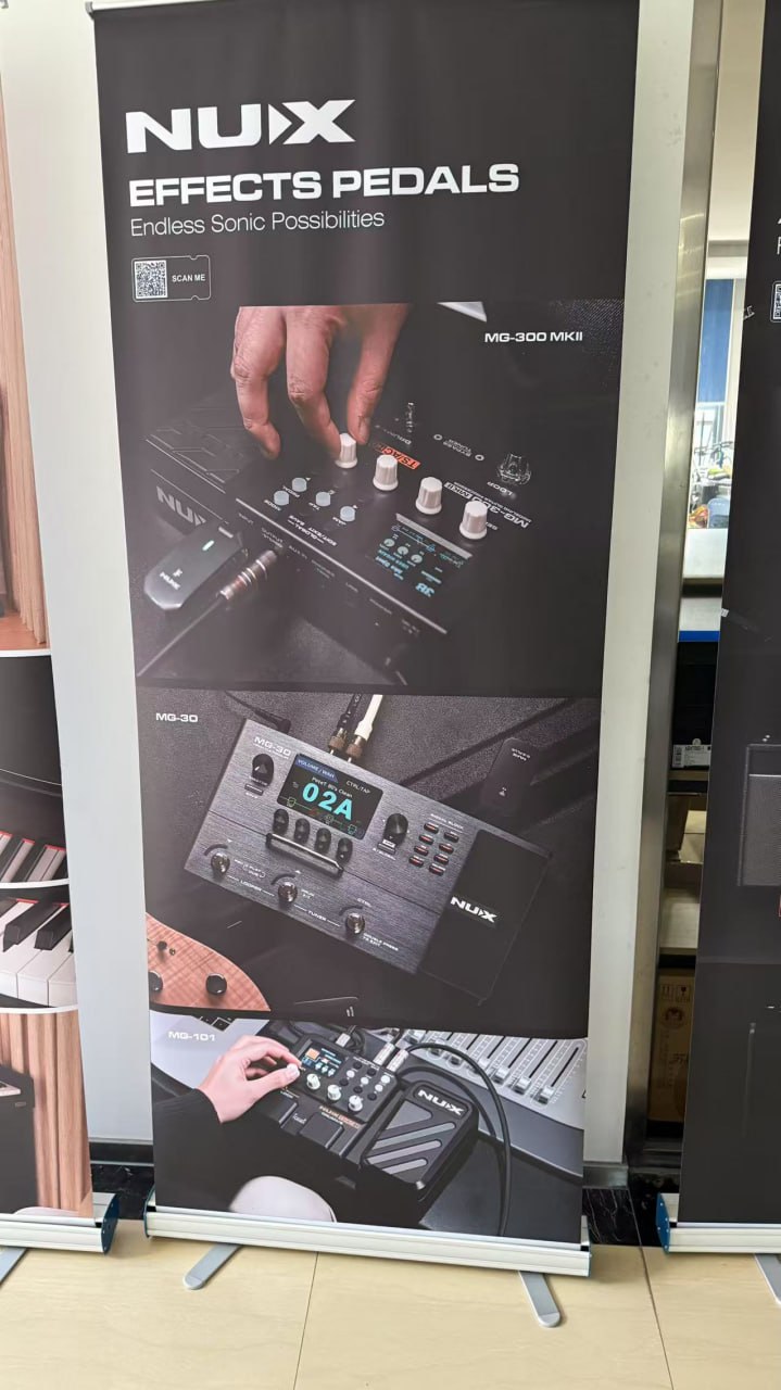 - Назначение: Стенд разработан специально для размещения продукции Nux, а именно беспроводных музыкальных систем (например, гитарных радиосистем).
