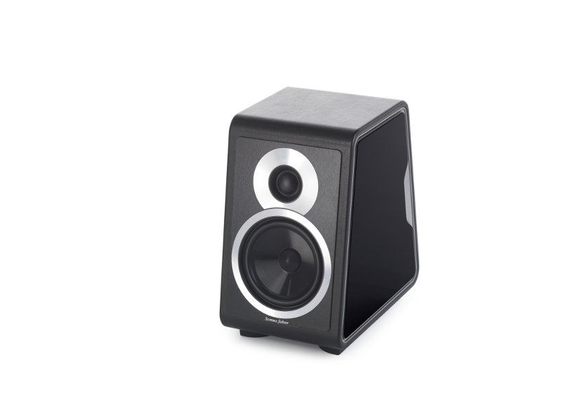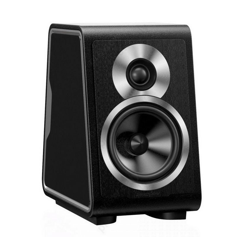 Sonus Faber Chameleon B Black, Сохраняя ряд традиционных элементов оформления, таких как кожаная отделка передней панели, округлые ребра и трапециевидные боковые поверхности, новая серия Sonus Faber Chameleon выглядит солидной и современной, с усиливающими алюминиевыми вставками под фланцы динамиков.