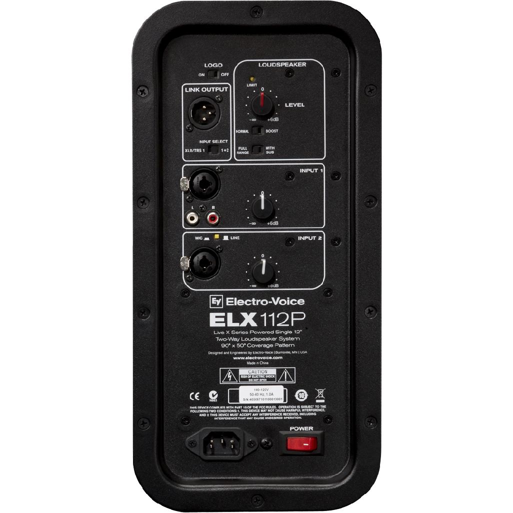 Electro-Voice ELX112P представляет собой активную, двухполосную акустическую систему. Эту акустику можно использовать как полноценный фронтальный спикер, или же в качестве мониторной системы. Внутри кабинета расположен мощный усилитель D-класса (1000 Вт) с системой охлаждения пассивного типа. Продолжительная мощность АС составляет 250 Вт, пиковая - 1000 Вт. Линейка акустических систем Live X прекрасно проявляет себя на большой сцене, эти системы надежны и эффективны при активной эксплуатации и туровой работе.