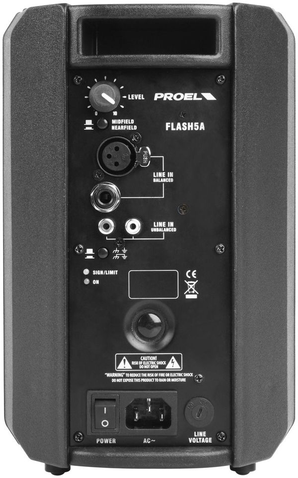Proel FLASH5A Активная 2-х полосная акустичечская система: 5" вуфер и 1" компрессионный драйвер с титановой диафрагмой, 100 Вт (80 Вт +20 Вт bi-amp), 70Hz - 20 kHz. Вход: - LINK: XLR F, 1/4” JACK, 2 x RCA. Корпус: пластик, чёрный цвет. Размер: 17.5 x 26 x 17 см, вес: 3.6 кг.
