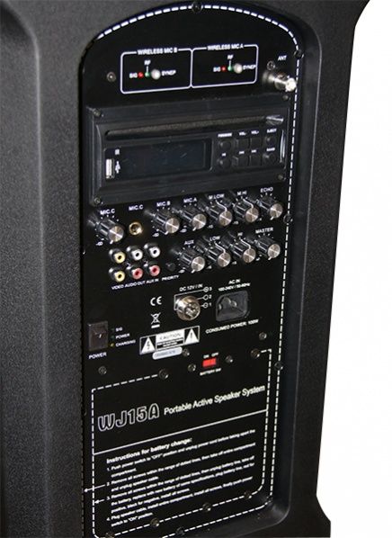 Портативная акустическая система WJ15A включает в себя функции микшера, усилителя и медиа плеера, универсальный продукт с отличным соотношением возможностей и цены.