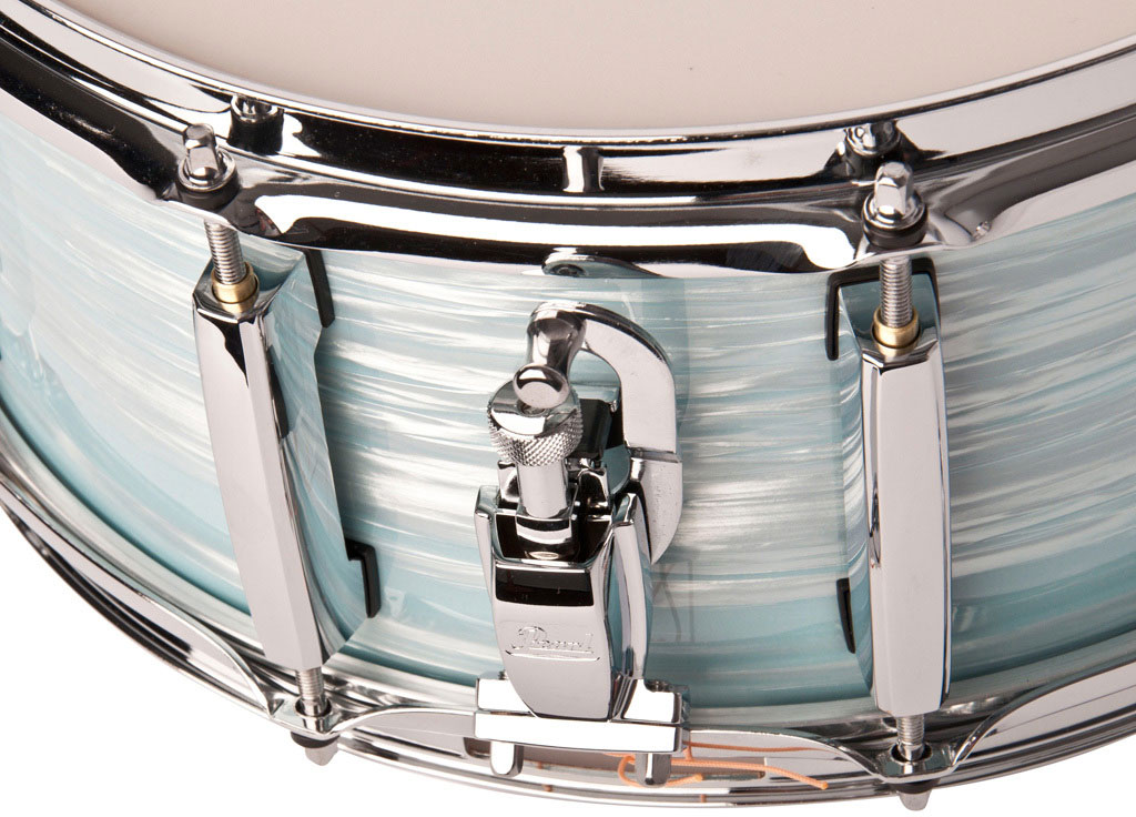 Барабаны имеют штампованные обручи SuperHoop II, стрейнер (машинка для подструнника) SR017, бриджевые лаги, стальные болты и пластики Remo.