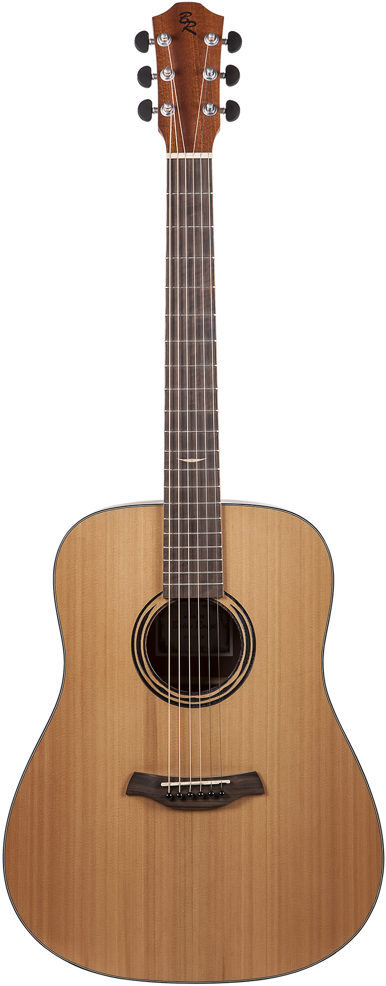 BATON ROUGE AR11C/D-W – шестиструнная акустическая гитара в стандартном корпусе дредноут. Особенность этой гитары в более широком грифе - 48 мм у нулевого порожка (у обычных гитар обычно 43 мм) . Гитара характеризуется матовой окраской с открытыми порами и красивой винтажной отделкой. Верхняя дека гитары изготовлена из массивного канадского кедра. Нижняя дека и обечайки – из махогани, из которого выполнен и гриф. У грифа накладка из дерева овангкол. Кант у гитары черный, сделан из ABS. Колковый механизм гитары AR11C/D-W – литой, матовый, хромированный и черными лепестками. У гитары стандартная мензура 650 мм