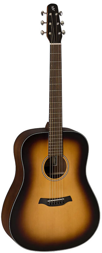 BATON ROUGE L1LS/D-burst – акустическая гитара без выреза в корпусе типа дредноут, благодаря чему инструмент имеет широкий динамический диапазон, звучит громко и объемно. Верхняя дека выполнена в корпусе из ели, задняя дека и обечайки – из красного дерева. Данное сочетание материалов делает тембр гитары ярким и звонким. Гриф также сделан из красного дерева, накладка на гриф и сам бридж – из овангкола. У гитары 21 лад, а верхний и нижний порожек (46 мм) выполнены из материала Nubone: упрощенная разновидность материала TUSQ, которая лучше гасит вибрацию струн, лучше передает частоты и гармоники, увеличивает объем звука и обогащает тон.