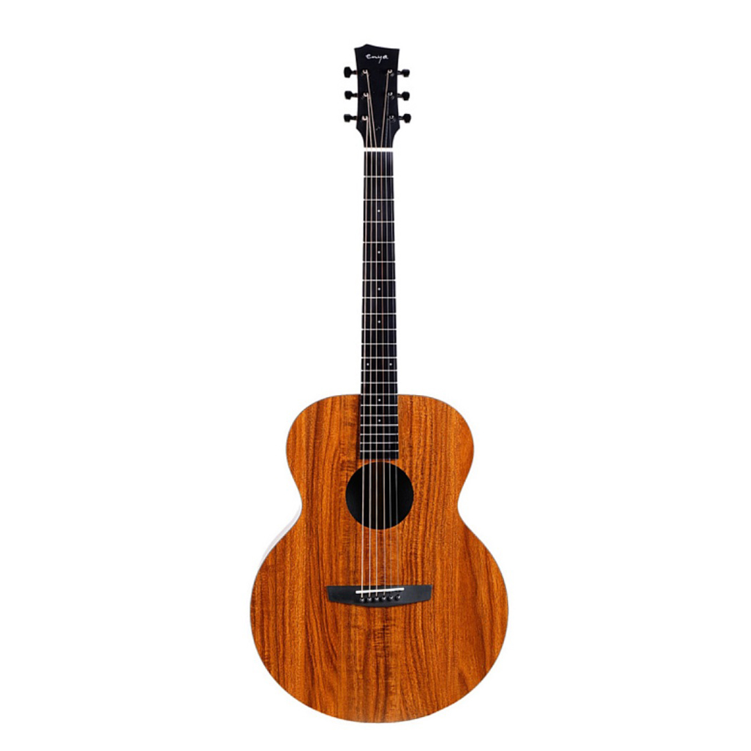 ENYA EA-X1+ - это шестиструнная акустическая гитара. Гитара имеет гриф из красного дерева. Верхняя дека гитары, обечайка и нижняя дека, сделаны из ламината высокого давления с рисунком KOA HPL. Гитара не оборудована звукоснимателем и тембр-блоком. Гитара под правую руку музыканта. Цвет гитары натуральный. Размер 41".