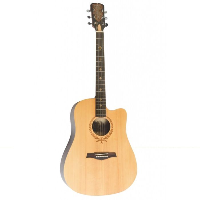 Excalibur EF310CFM – замечательный инструмент, который производит впечатление как своим внешним видом, так и звуком. Очень стильно смотрятся маркеры ладов в виде готических крестов из дерева и лазерная гравировка розетки, голова грифа покрыта палисандром под цвет нижней деки и обечайки. Корпус из палисандра и массива ели дает изысканный яркий и глубокий звук, а вырез облегчает доступ к верхним ладам.