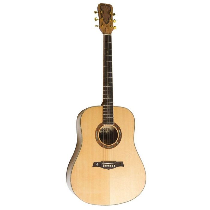 EXCALIBUR EF(CF)-5400FM гитара акустическая (41"), цвет: натуральное дерево, форма корпуса: дредноут, мензура: 650мм, лады: 21, верхняя дека: кедр, нижняя дека и обечайка: волнистый клен, гриф: ель, накладка грифа: клен, маркеры: ABS, колки: литые, анкер: двусторонний Bi-Flex, подставка-бридж: палисандр