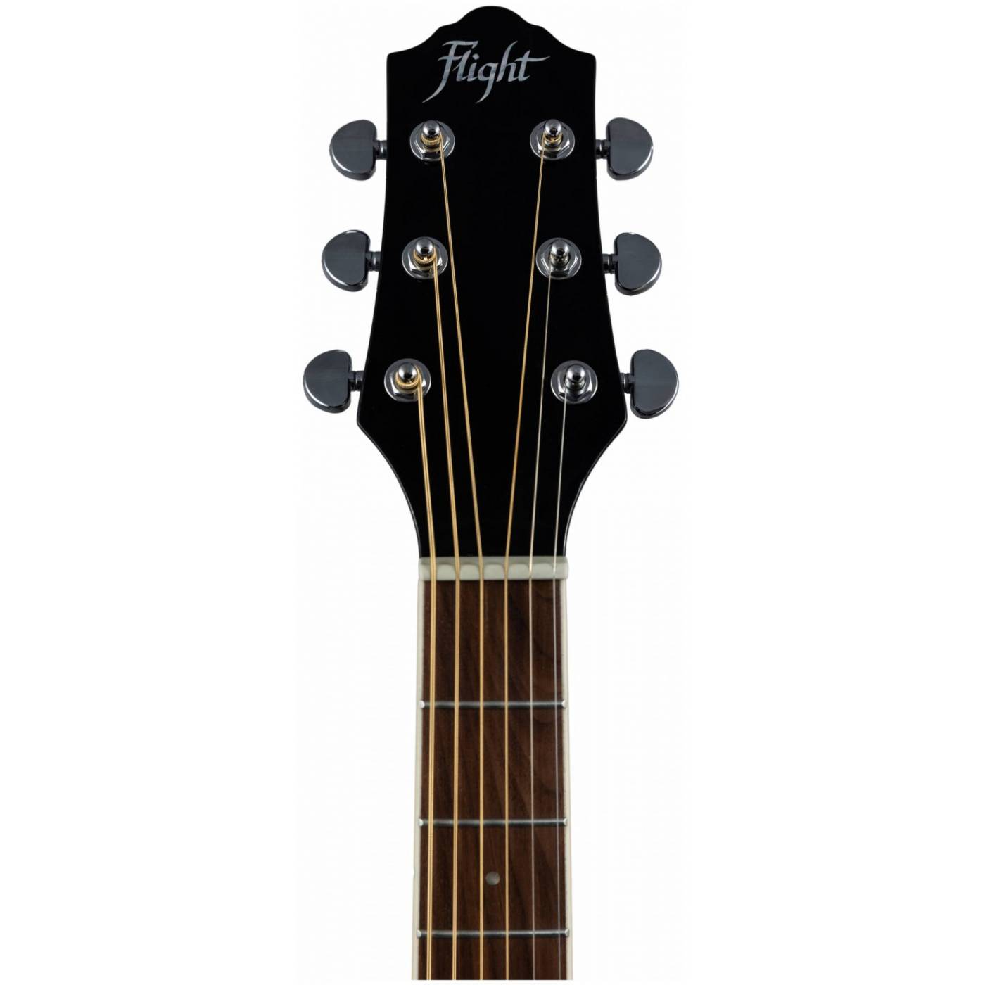 Гитара Flight AD 200-BK - прекрасный инструмент, который станет вашим верным спутником в любой ситуации. Этот инструмент обладает тремя неоспоримыми преимуществами, которые делают его хитом продаж: хороший звук, невысокая цена и неприхотливость в эксплуатации. Эту гитару вы всегда сможете взять с собой на природу, корпус гитары не требует постоянного ухода, увлажнения и поддержания нужной температуры в помещении. Обратите внимание на скос на корпусе под правую руку! Раньше таким скосом обладали только электрогитары, теперь Flight AD 200-BK воплощает это удачное решение для акустического инструмента. Просто сравните ощущения от игры на гитаре со скосом с ощущениями от обычной гитары и почувствуйте насколько это удобно!