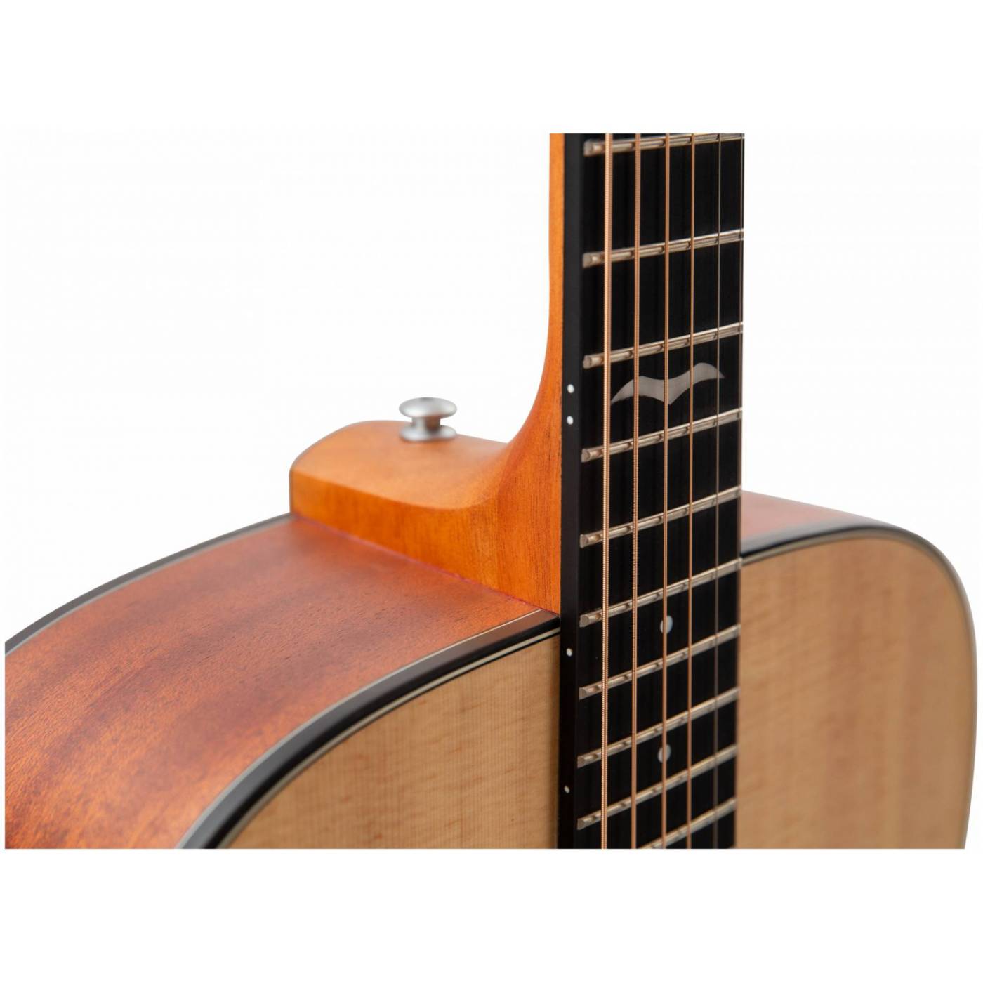 Верхняя дека гитары FLIGHT AD-555 NA выполнена из массива ситхинской ели. Эта порода древесины особенно ценится в производстве музыкальных инструментов за её однородную структуру, которая обеспечивает хороший резонанс и глубокий, прозрачный звук. Тонкий матовый лак позволяет дереву лучше «дышать» и хорошо сочетается с натуральным цветом ели.
