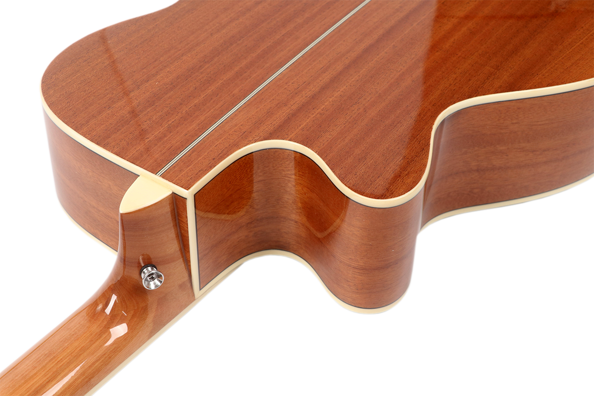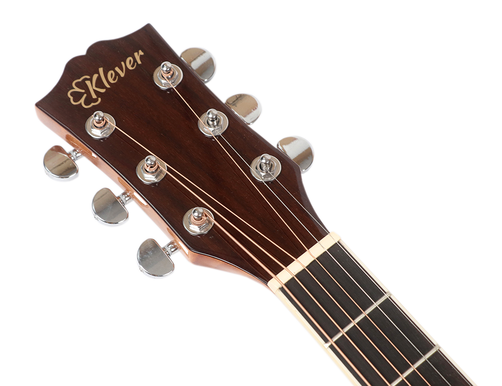 Модель KA-100 представляет собой акустическую гитару формы Аудиториум. Топ инструмента выполнен из ели, а гриф – из махагони. Комфорт во время игры, надёжность сборки и первоклассные материалы – вот лишь несколько вещей, которые выгодно отличают гитары Klever.