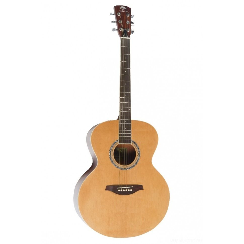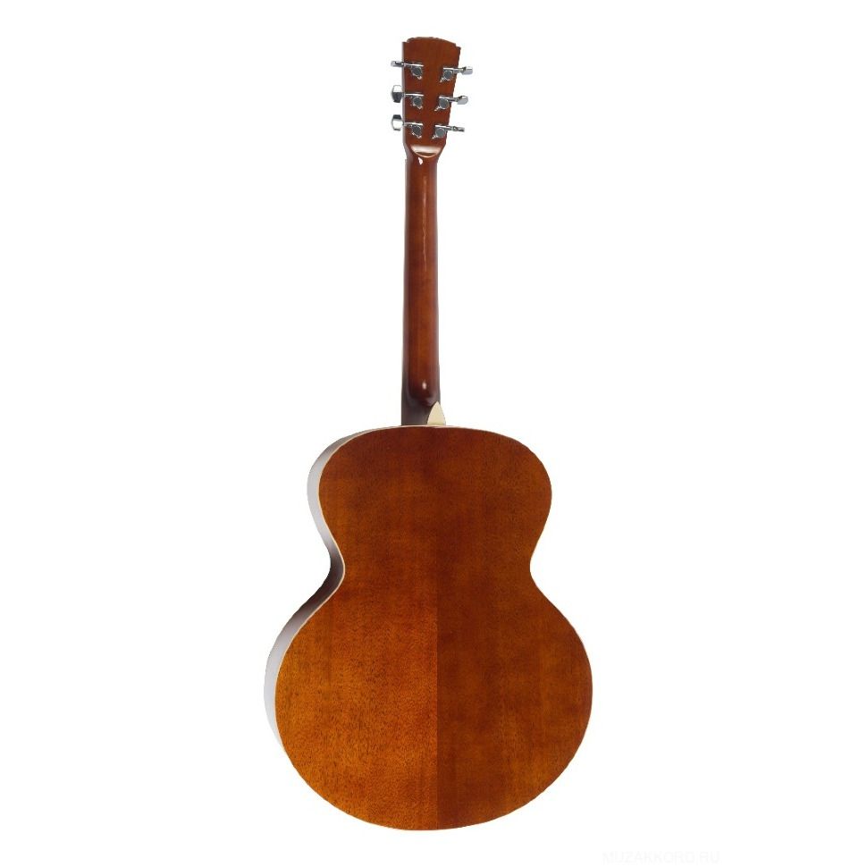 Virginia VLJ40 - акустическая гитара с формой корпуса мини-джамбо. Замечательный инструмент профессионального уровня по невероятно низкой цене! Эта модель создана по всем канонам, характерным для этого типа фолк-гитар: верхняя дека из массива резонансной ели, нижняя дека и обечайка из африканского красного дерева сапеле, узкий гриф из кедра с палисандровой накладкой и палисандровый бридж, металлические струны. Гитара сделана надежно, гриф и бридж прочно и аккуратно вклеены, пружины достаточно крепкие, чтобы выдержать сильное натяжение даже толстых струн, литые колки хорошо держат строй, лады аккуратно закатаны для комфортной игры.