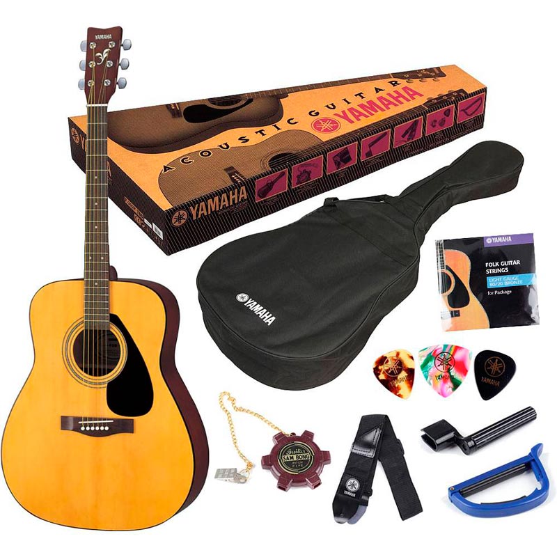 Акустическая гитара Yamaha F310 с набором полезных аксессуаров: чехол, ремень, медиаторы, струны, камертон, каподастр