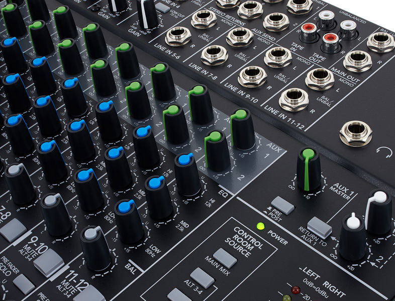 - Выходы 2 x XLR main out, 2 x 1/4" TRS Jack main out, 4 x 1/4" TRS Jack stereo return, 1 x 1/4" TRS Jack phones, 2 x RCA tape out, 2 x 1/4" TRS Jack send, 2 x 1/4" TRS Jack control room, 2 x 1/4" TRS Jack alt out