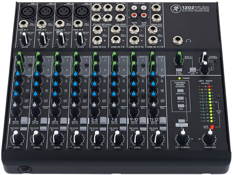 Mackie 1202 VLZ4 – компактный 12-канальный аналоговый микшер из серии VLZ4. В этих микшерах применены компоненты премиум-класса, в число которых входят и высококачественные микрофонные предусилители Onyx. У них широкий диапазон усиления в 60 дБ, широкий динамический диапазон 128.5 дБ, расширенная частотная характеристика и сверхмалый уровень искажений. Используются малошумные операционные усилители М80.