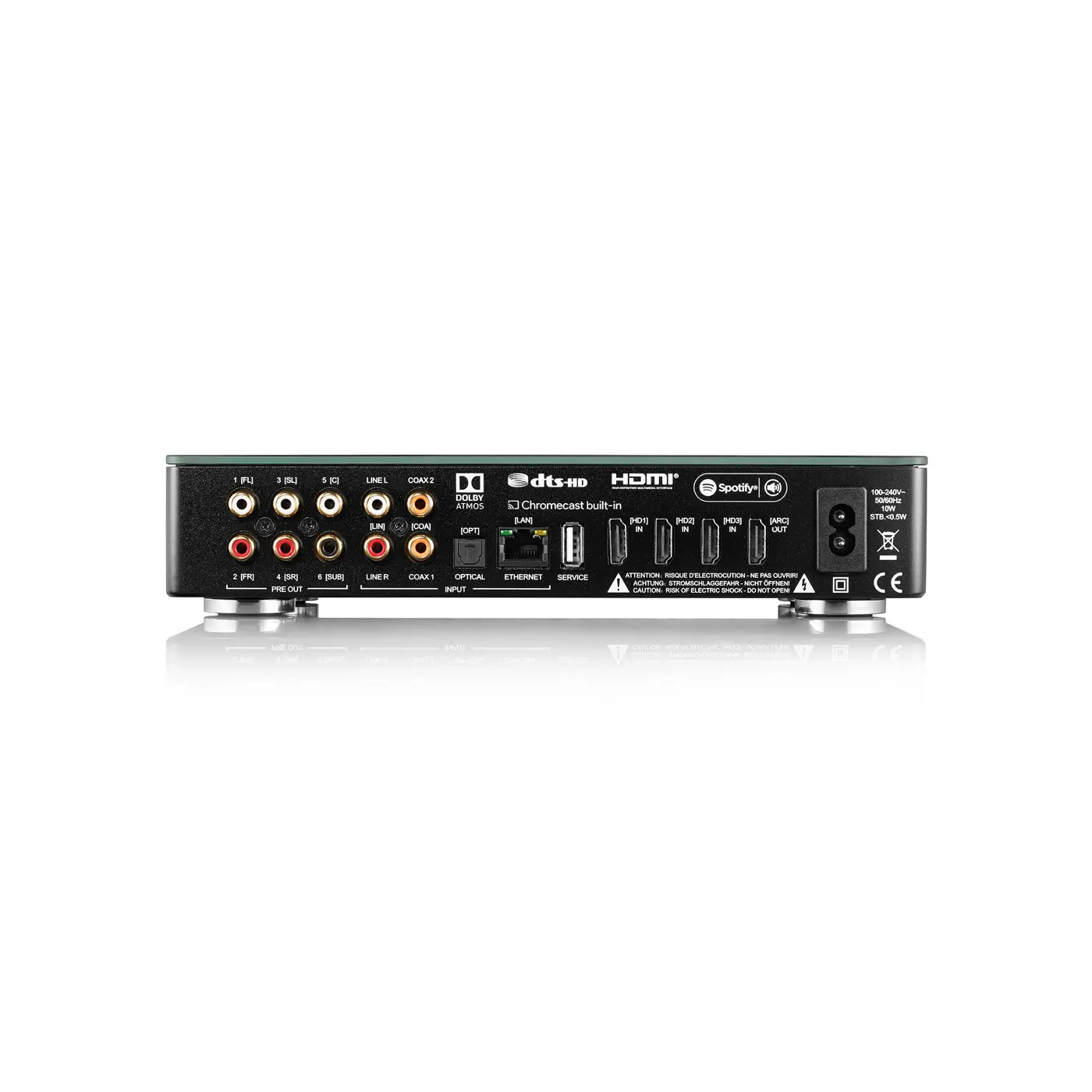 Canton Smart Connect 5.1 – беспроводной AV-предусилитель с поддержкой Dolby Atmos. Сочетает в себе до 8 беспроводных динамиков Smart Series с 6 проводными активными динамиками или усилителями мощности. Кроме того, Smart Connect 5.1 служит обновлением любой стандартной стереосистемы для создания виртуального 3D-звука домашнего кинотеатра. Виртуальным Atmos можно наслаждаться даже с аналоговым ламповым усилителем. Разнообразные возможности подключения и простота использования с разъемами HDMI, совместимыми с 4K, устанавливают новые стандарты современной музыки, наполняющей комнату, и звука домашнего кинотеатра. Благодаря встроенным функции Chromecast и сервису Spotify Connect вы можете передавать свою любимую музыку без проводов через WLAN. Будь то стереосистема, домашний кинотеатр с 14 динамиками или подключение существующего усилителя к домашней сети — возможности универсальны. Высококачественный предусилитель AV можно использовать в качестве центра подключения и интерфейса для ваших интеллектуальных громкоговорителей и усилителей мощности. Передача с высоким разрешением до 24 бит/96 кГц обеспечивает основу для впечатляющего звучания. Вы можете осуществлять потоковую передачу по беспроводной сети на 8 интеллектуальных громкоговорителей и по кабелю на еще 6 активных громкоговорителей или усилителей мощности. Многомерный виртуализатор обеспечивает необыкновенный трехмерный объемный звук даже в стереофоническом режиме. Будь то потоковое стерео или проводное через разъем, подключение в качестве домашнего кинотеатра или в качестве интерфейса для подключения вашего усилителя к WLAN — возможности универсальны и уникальны.
