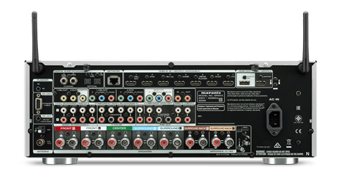 | Входы | 8 х HDMI (4K/60 Гц, HDCP 2.2, HDR10, Dolby Vision, HLG, BT.2020, 4:4:4 Pure Color, 3D, 21:9 видео), USB порт для внешних накопителей (фронтальная панель), 5 линейных RCA, 7.1-канальный RCA, 2 оптических, 2 коаксиальных, 3 композитных, 2 компонентных, порт LAN для подключения к локальной сети |