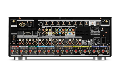 | Входы | 8 х HDMI (4K/60 Гц, HDCP 2.2, HDR10, Dolby Vision, HLG, BT.2020, 4:4:4 Pure Color, 3D, видео с соотношением сторон 21:9), USB порт для внешних накопителей (под крышкой фронтальной панели), 6 линейных RCA, 7.1-канальный RCA, вход MM-фонокорректора, 2 оптических, 2 коаксиальных, 4 композитных, 3 компонентных, LAN-порт |