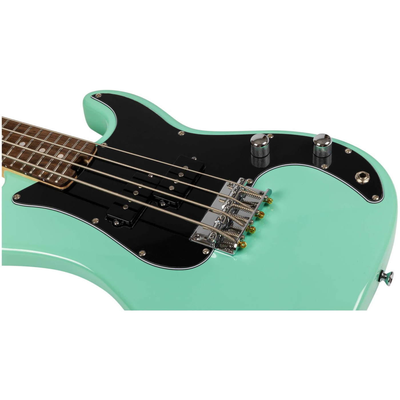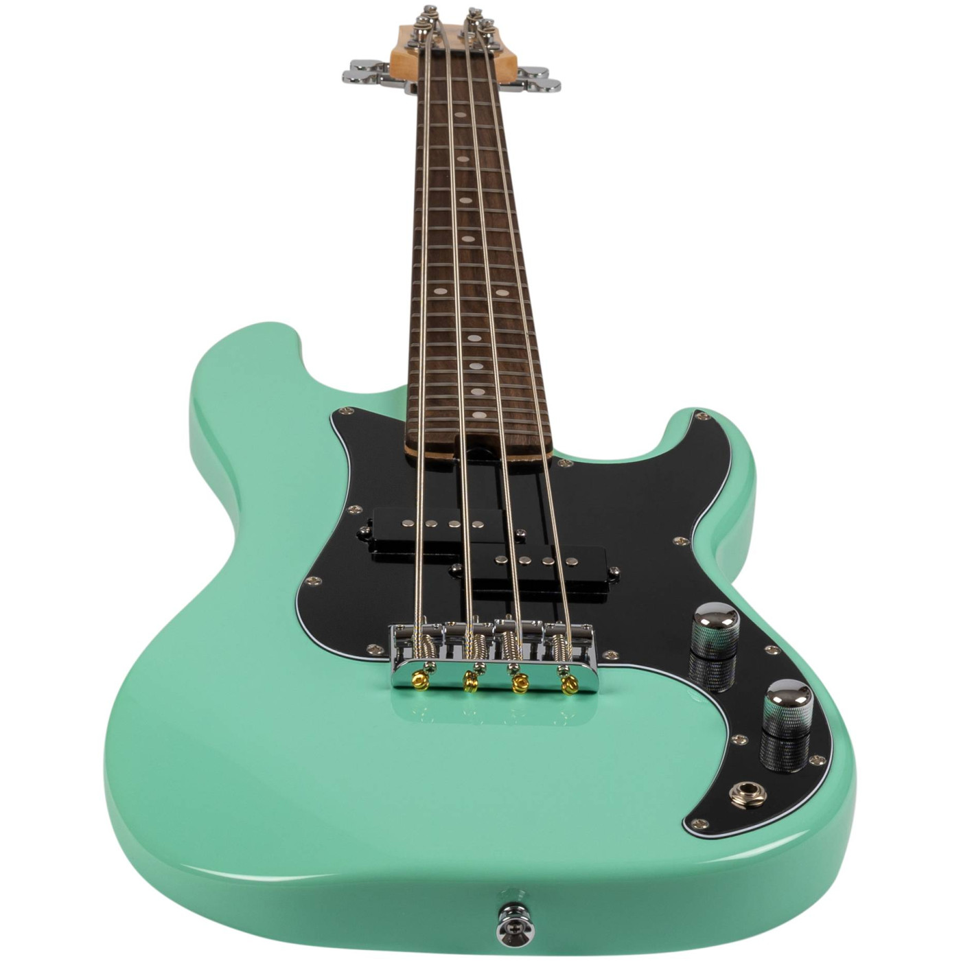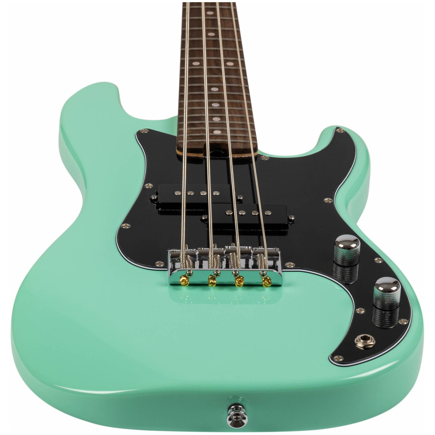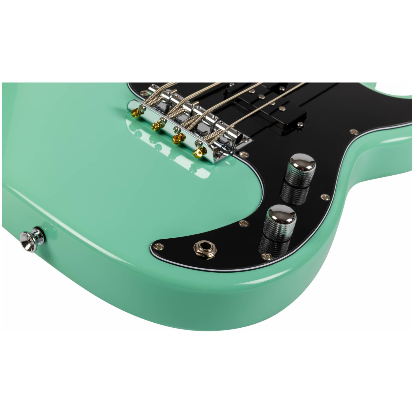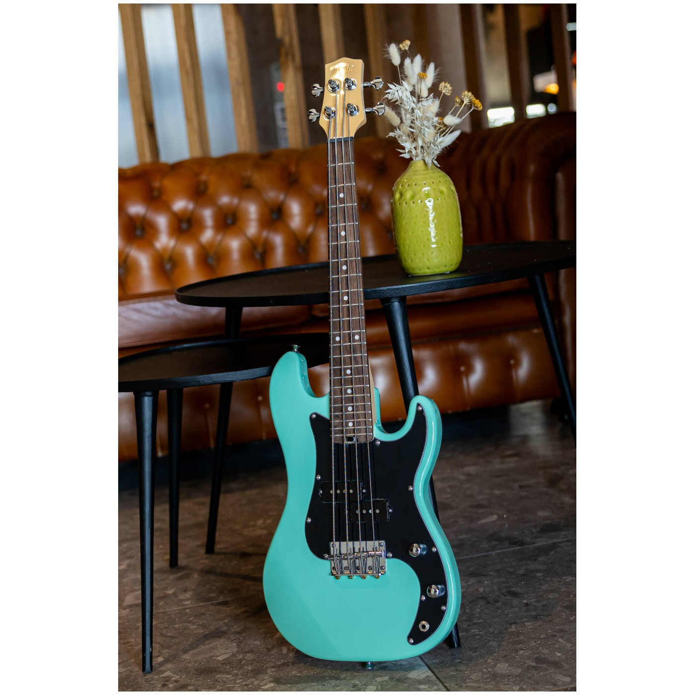 Описание:Flight Mini Bass Lite SFG — миниатюрная, но мощная бас-гитара, в цвете морской волны, которая идеально подходит для гастролирующих музыкантов. Несмотря на компактный размер (мензура 23" / 595 мм), инструмент сохраняет стандартный строй (EADG) и обладает насыщенным, чётким звучанием благодаря датчикам Alnico 5 и корпусу из тополя.