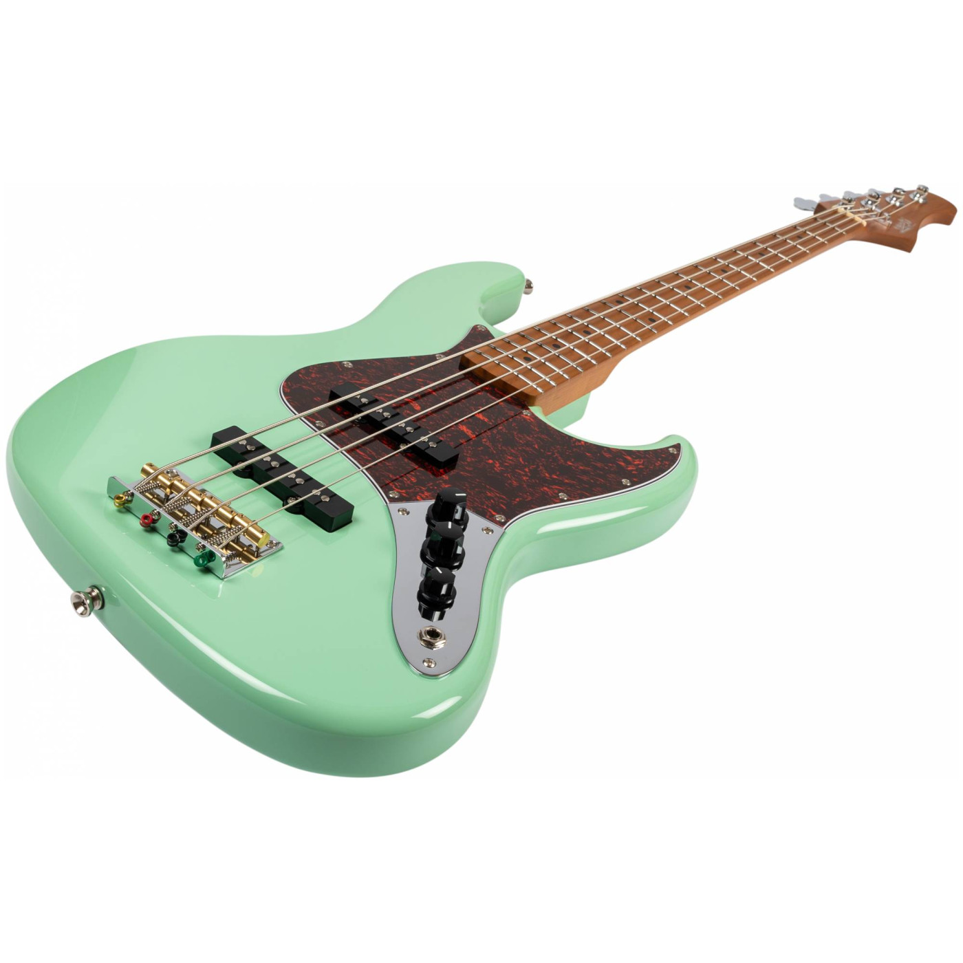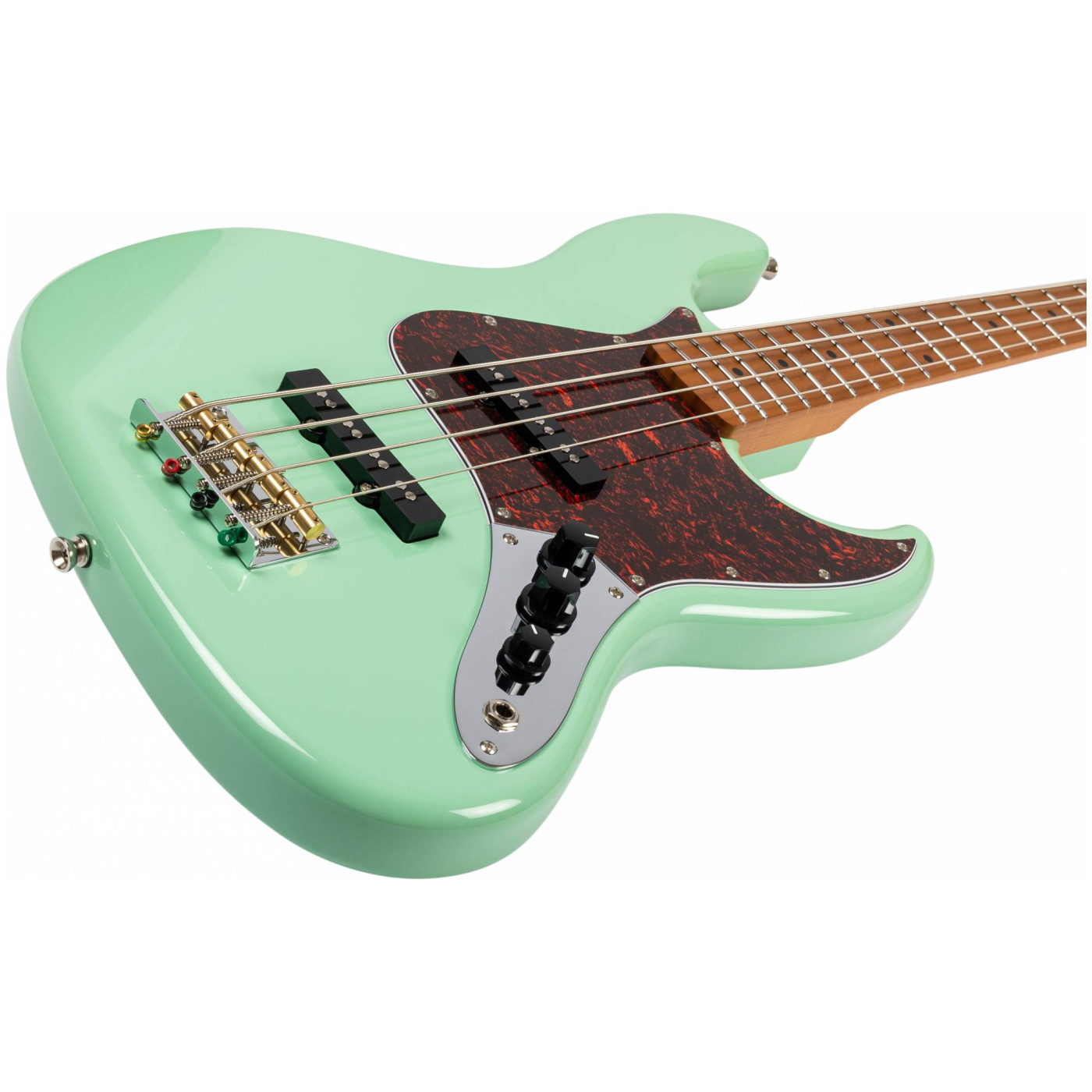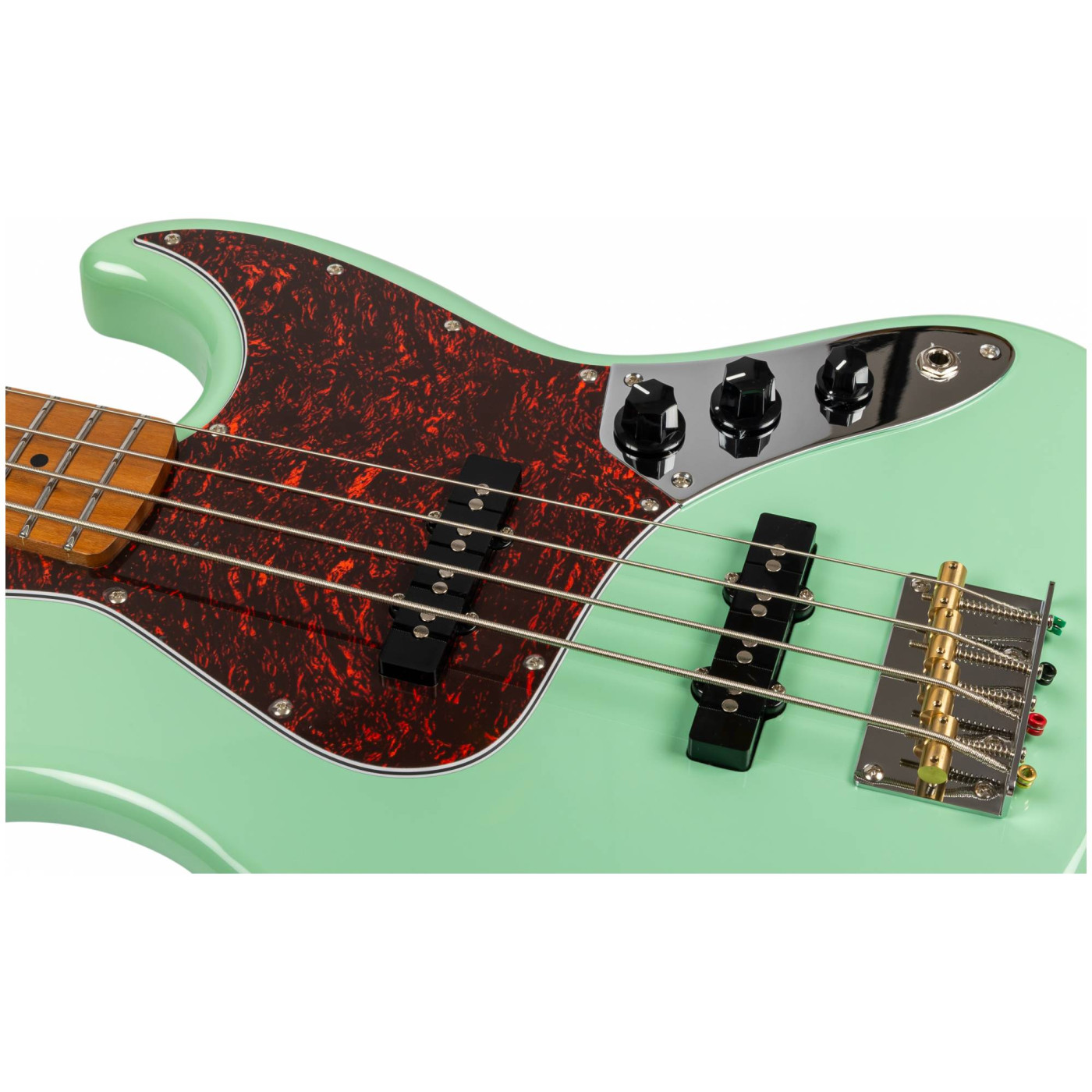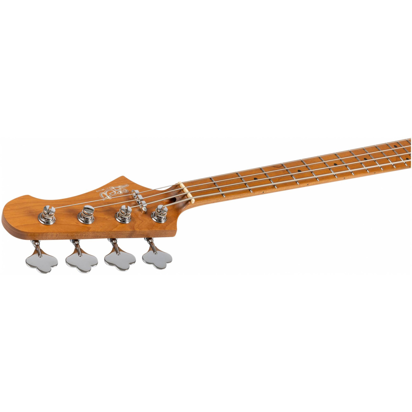 Описание:Jet JJB-300 SFG это классическая Jazz Bass бас-гитара в современном прочтении Jet. Корпус выполнен из печеного тополя, это одна из самых распространенных пород дерева для изготовления бас-гитар. Звук чистый, с максимально выраженной серединой. Гриф и накладка грифа выполнены из обожженного клена (roasted maple) и обеспечивают улучшенную стабильность, а также более винтажный вид и объемное рельефное звучание инструмента. При запекании дерева максимально сжимаются и в процессе использования вода уже не будет выходить, ваша накладка не сожмется и лады не повылазят вне зависимости от влажности и смены температуры. Дерево приобретает благородный золотисто-коричневатый оттенок. В целом такая обработка положительно влияет на стабильность грифа, делает тембр звучания более объемным и внешний вид инструмента более винтажным.