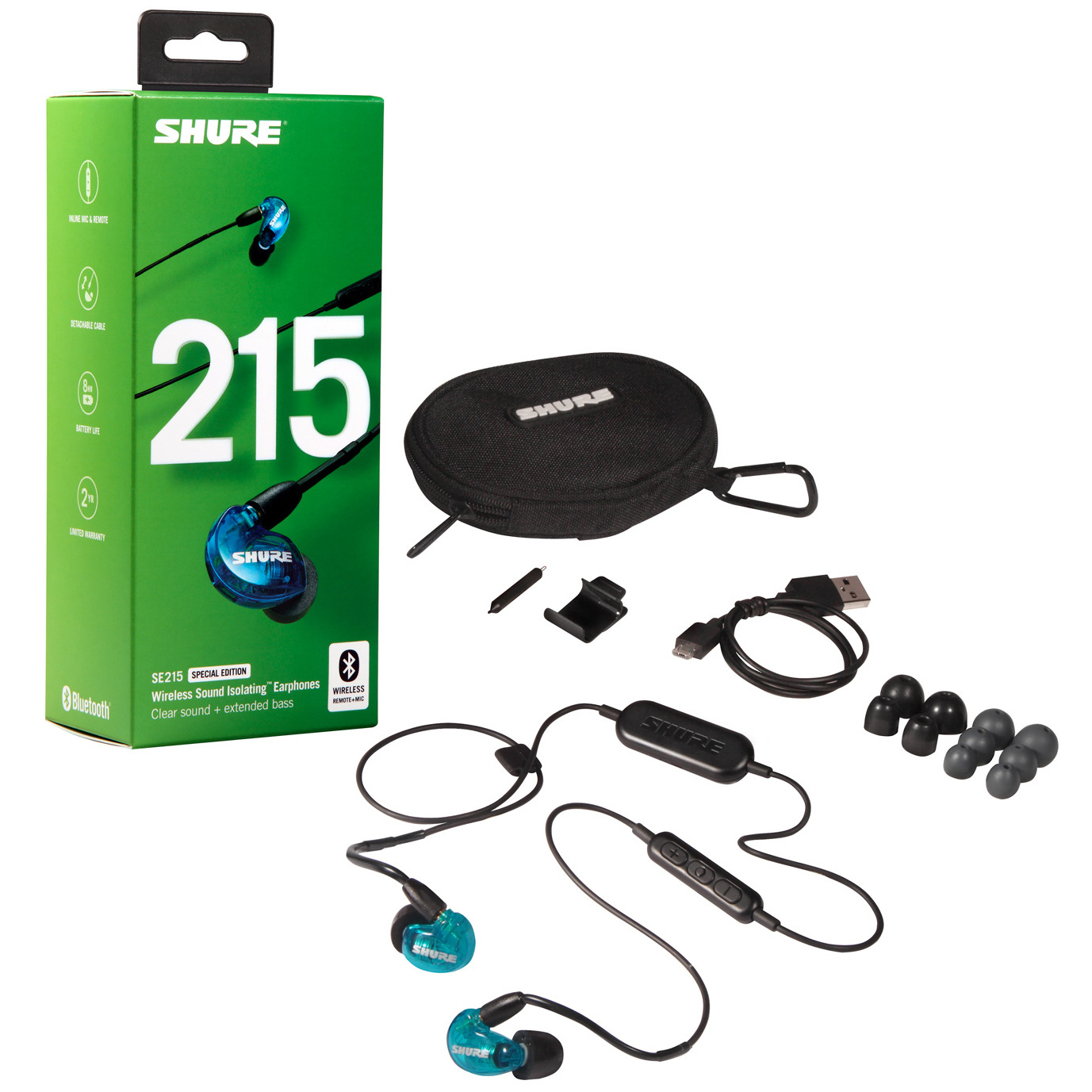 SHURE SE215SPE-B-BT1-EFS беспроводные внутриканальные Bluetooth наушники с одним динамическим драйвером, прозрачный голубой.