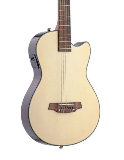 Электроакустическая классическая (4/4) гитара с вырезом, 19 ладов. Верхняя дека: шпон ели. Нижняя дека и обечайка: ель. Гриф: махагон. Накладка: палисандр. Бридж: палисандр. Электроника: активный AR300 2-полосный эквалайзер/регулятор громкости/светодиодный индикатор батареи. Цвет: натуральный