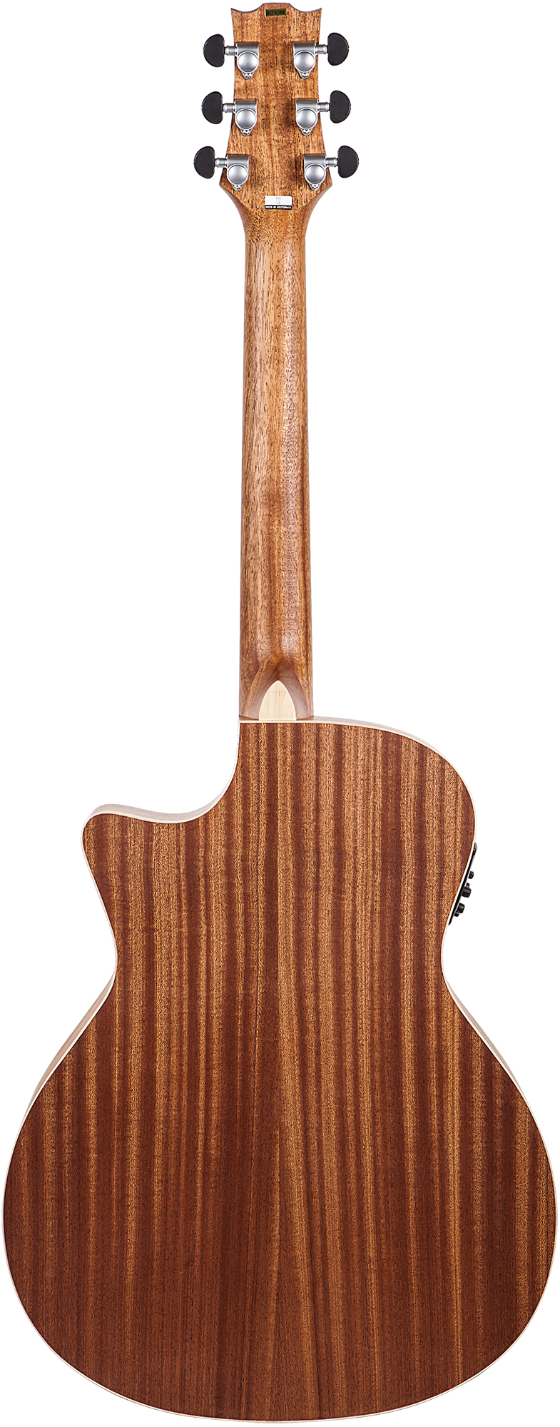 Электроакустическая гитара в корпусе Auditorium с катавеем. Гитара выполнена в натуральной отделке и отличается лазерной гравировкой солнца вокруг розетки. Топ у гитары выполнен из массива канадского кедра, нижняя дека и обечайки – из красного дерева (махагон). Из него же сделан и гриф с накладкой из ованкола. Окантовка корпуса создана из клена, а отделка сделана матовой и с открытыми порами.