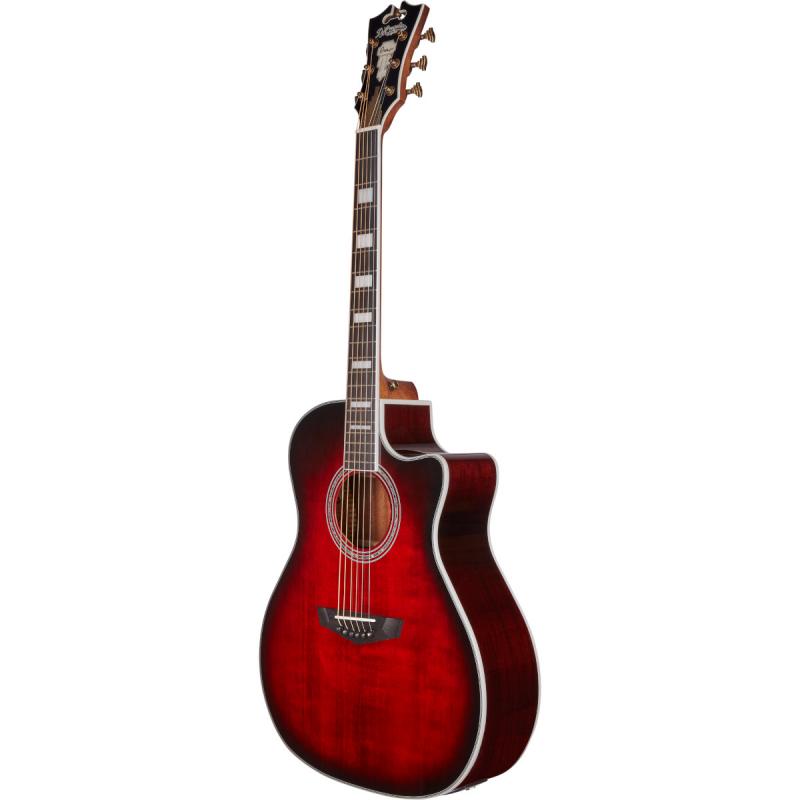 Электроакустическая 6-струнная гитара, форма корпуса Grand Auditorium, электроника D'Angelico, верхняя дека - массив ситхинской ели, обечайка и нижня дека - махагони, цвет красный бесрт