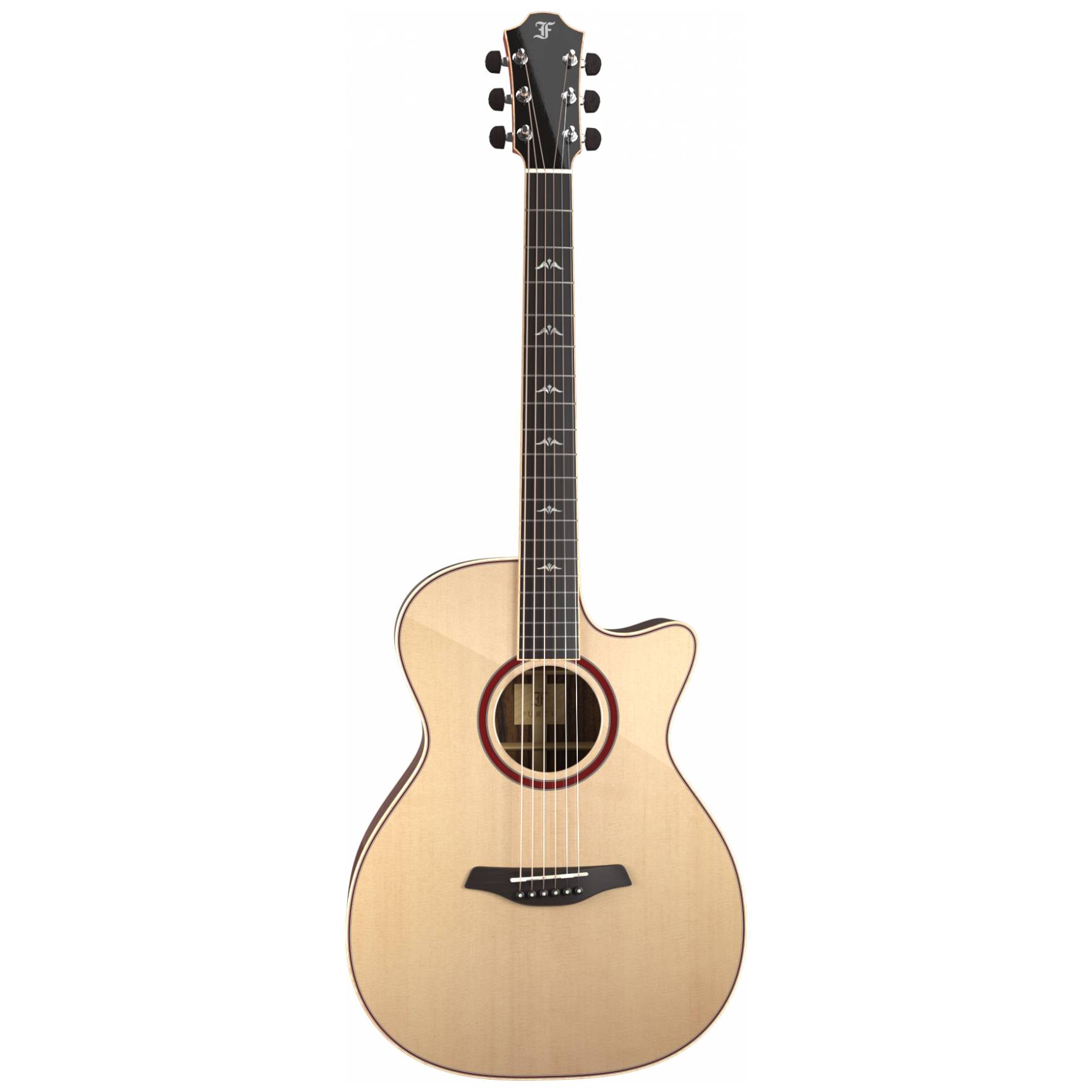 Верхняя дека выполнена из массива ситхинской ели категории ААА. Нижняя дека и обечайка - из массива индийского палисандра (также категории ААА). Благодоря высококачественной древесине инструмент звучит велеколепно и подчеркивается многочисленными деталями - окантовка из огненного клена на корпусе, голове и грифе, пурфинг и розетка из падаука, а также перламутровые маркеры на грифе в форме цветка.
