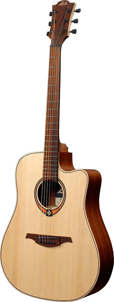 Верхняя дека гитары LAG GLA T270DCE из массива ели Энгельмана класса АА обеспечивает богатый и громкий звук. А корпус, выполненный из экзотической древесины snakewood, придает насыщенность каждой звучащей ноте.
