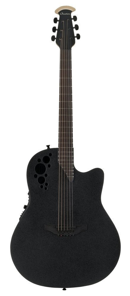OVATION 2078TX-5 Elite TX Deep Contour Cutaway Black Textured - 6-ти струнная электроакустическая дредноут гитара с вырезом. Верхняя дека выполнена из массива ели АА, нижняя дека из углепластика. Гриф состоит из клёна. Так же присутствует активная электроника Ovation OCP-1K Pickup+преамп OP-Pro с тюнером. Гитара в чёрном цвете с текстурированным покрытием верхней деки и матовым покрытием грифа. Ovation Guitars - легендарная американская компания. Интересно, есть ли хоть один гитарист, который никогда не видел или хотя бы не слышал об акустических гитарах с круглой композитной нижней декой? Уже 50 лет, как многие другие производители копируют эту идею - но только гитары Ovation остаются эталоном на недосягаемой высоте! Как говорят в компании: "Мы не следуем стандартам - мы их создаем."