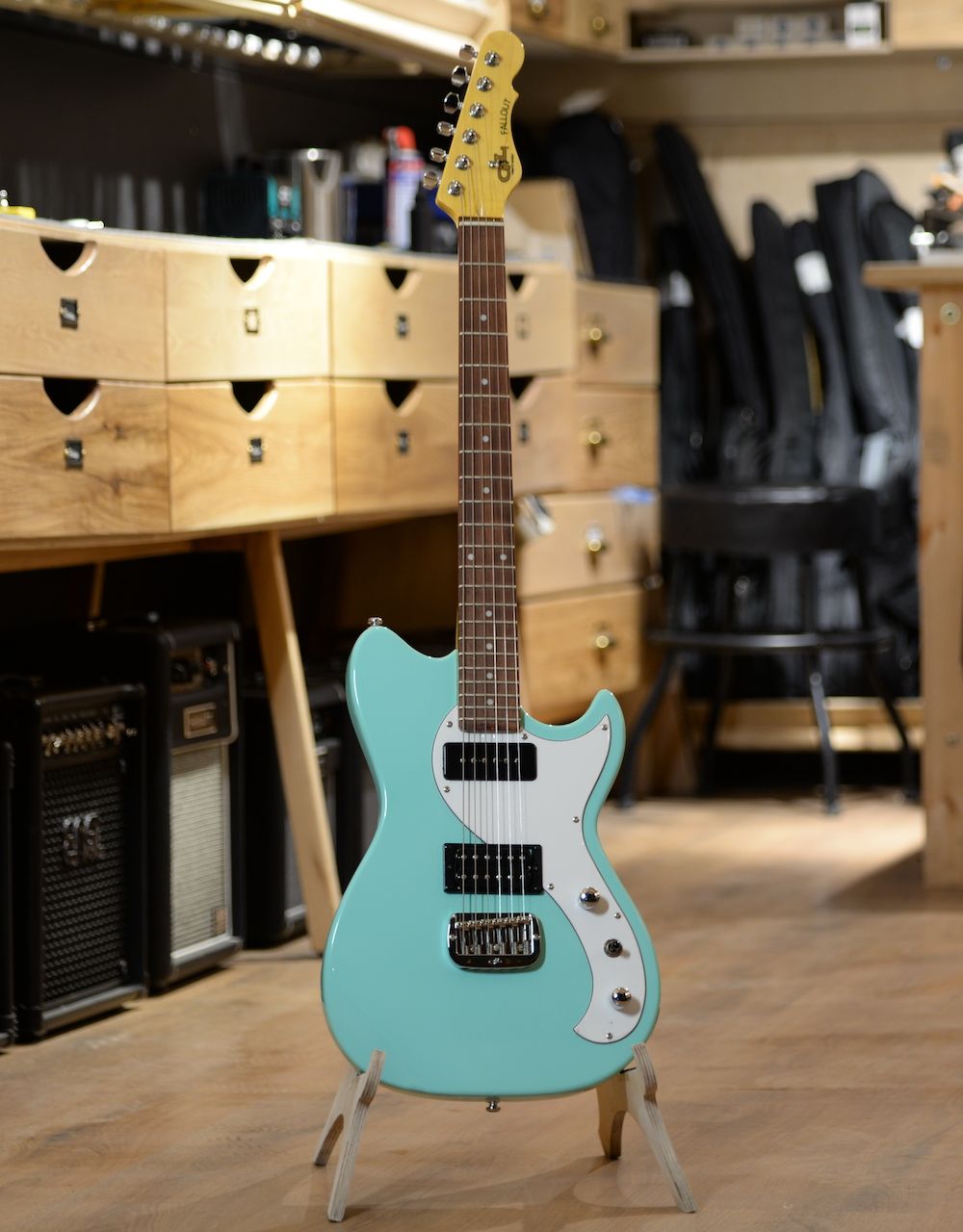 G&L Fallout - это заряженная гранжем реинкарнация классики Лео Фендера родом из 1983 года - модели SC-2, в свою очередь рождённой под влиянием пост панка начала 80-х. Корпус из красного дерева и фирменный бридж Saddle Lock выжимают из маленького юркого корпуса море сустейна, а болчёный гриф при этом помогает не терять яркой перкуссивной атаки.