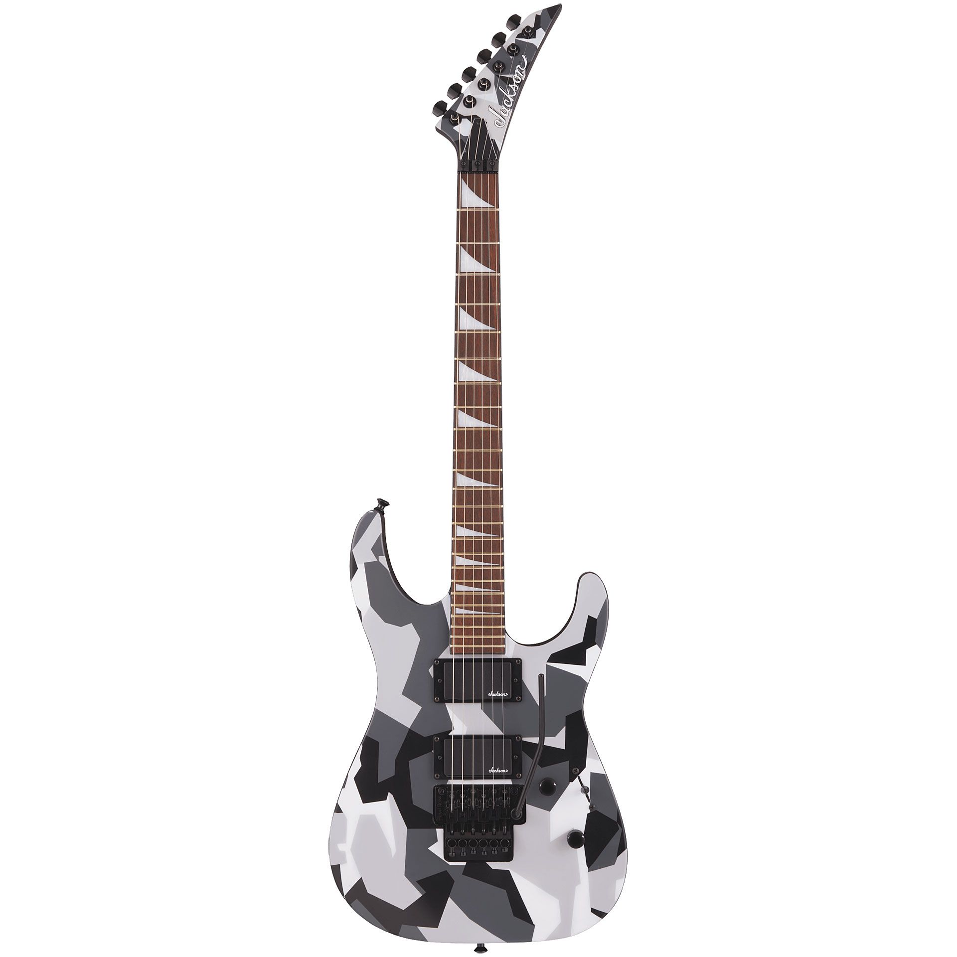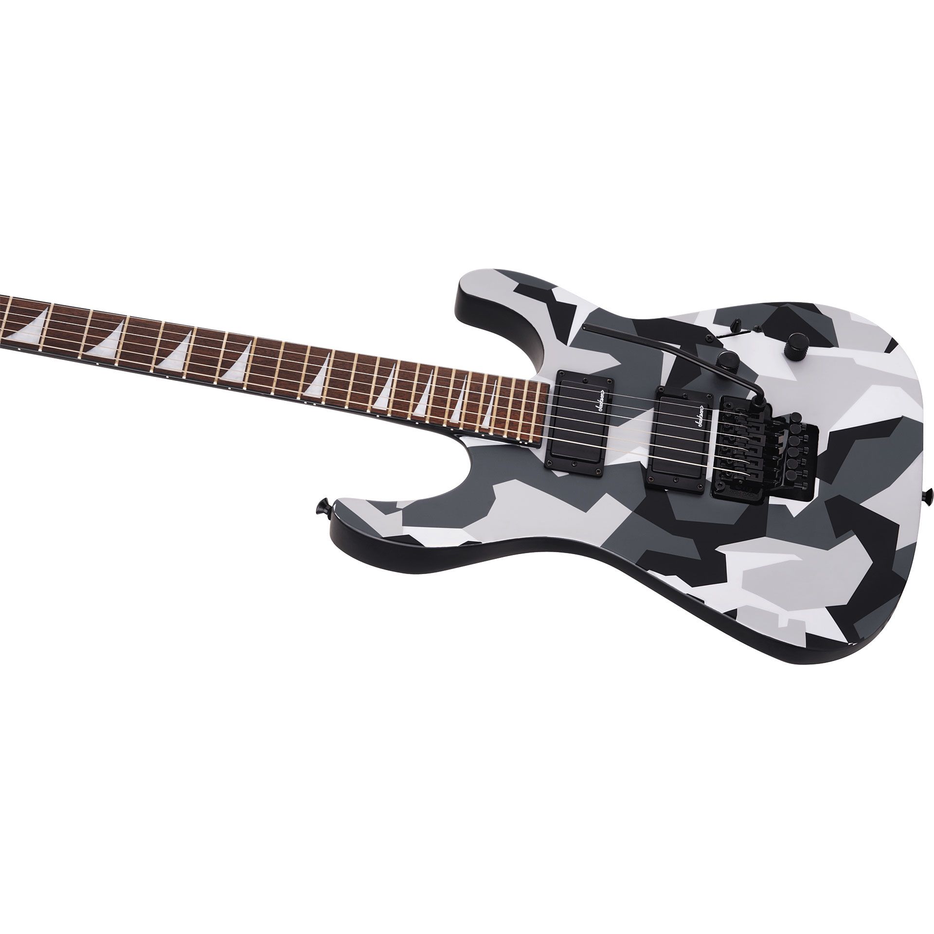 Электрогитара, 6 струн, форма корпуса – Soloist, корпус – тополь, гриф – клен/лаурель, звукосниматели – Jackson Covered High-Output Humbucking (H-H), тремоло – Floyd Rose Special, цвет – серо-белый камуфляж