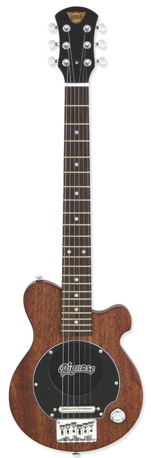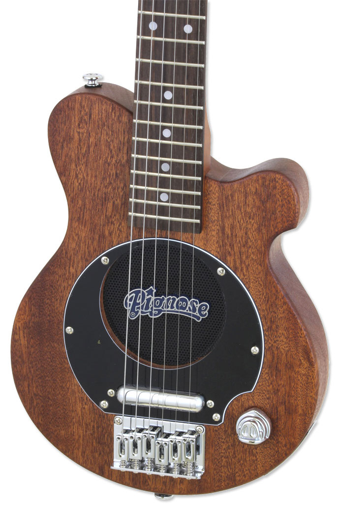 PIGNOSE PGG-200MH STBR - уменьшённая, компактная, созданная специально для путешествий либо для головокружительных джемов на природе, на сцене, а так же для поездок в которых вы не хотите прекращать свои занятия. Гитара оснащена прямым выходом для наушников. Ну а если вы хотите использовать сторонний усилитель, просто подключите гитару через специальный инструментальный выход и вы будете удивлены как может звучать эта 610-миллиметровая малышка не уступающая полно мензурным инструментам. Всё из за фирменного датчика (рельсового хамбакера) встроенного у самого бриджа. Фирменный чехол в комплекте.