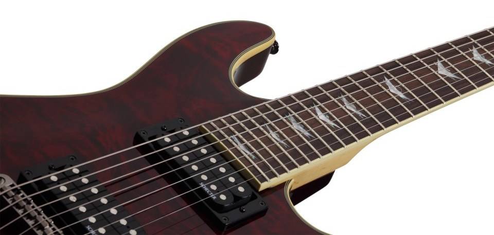 SCHECTER OMEN EXTREME-7 BCH - 7-струнная электрогитара, 24 лада, корпус: красное дерево с топом из волнистого клёна, гриф: клён, на болтах, накладка: палисандр, звукосниматели: HH 2x Schecter Diamond Plus, регулировки: 2х громкость, тон (push-pull), 3х позиционный переключатель, Цвет: Black Cherry (BCH)