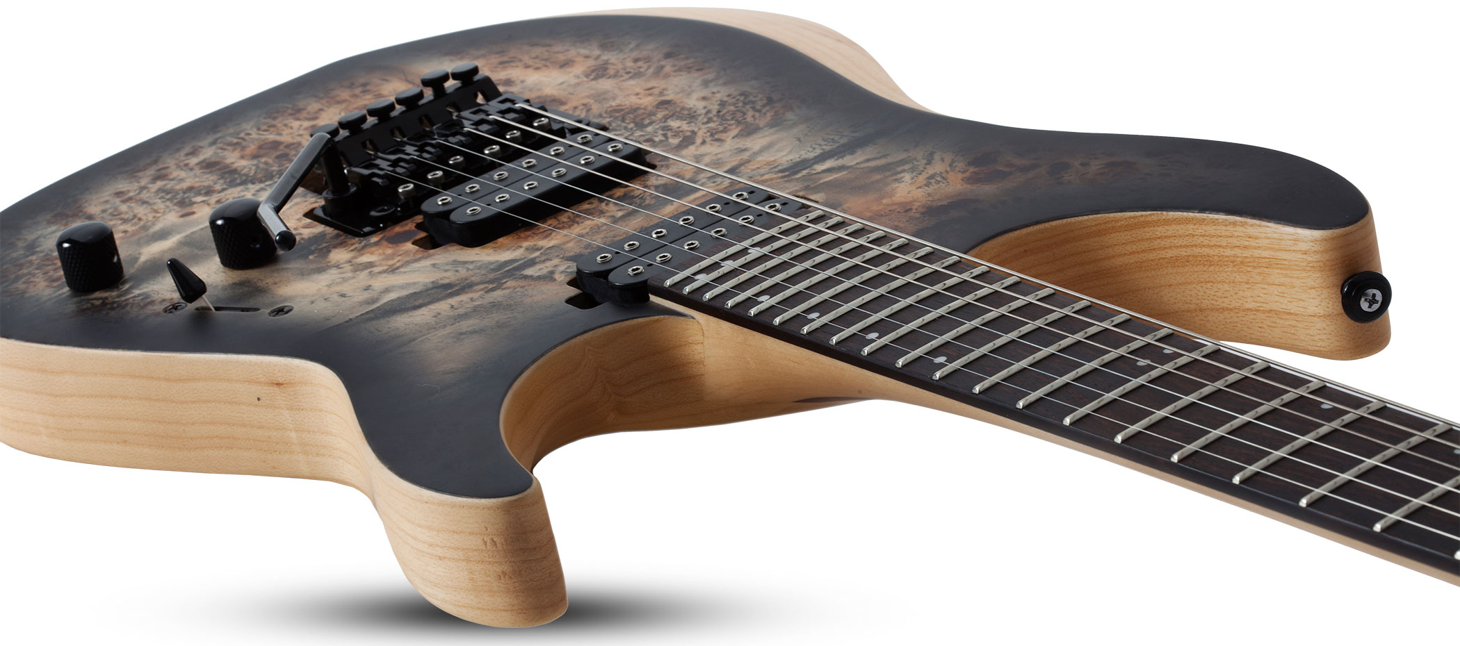 SCHECTER REAPER-6 FR SCB - 6-ти струнная электрогитара, 24 лада, корпус: болотный ясень с топом из капа, гриф: клён, орех со вставками из углеволокна, вклееный, накладка: черное дерево, цвет: Satin Charcoal Burst (SCB)