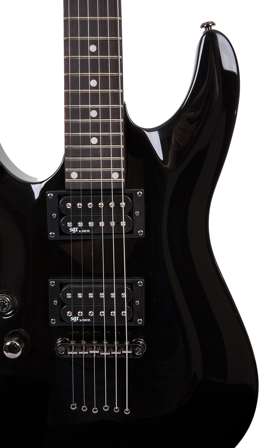 SCHECTER SGR C-1 BLK LH - леворукая 6 струнная электрогитара, 24 лада, корпус: липа, гриф: клён, на болтах, накладка палисандр, звукосниматели: HH Schecter Diamond Plus, регулировки: громкость, тон. 3х позиционный переключатель, цвет: Gloss Black (BLK)