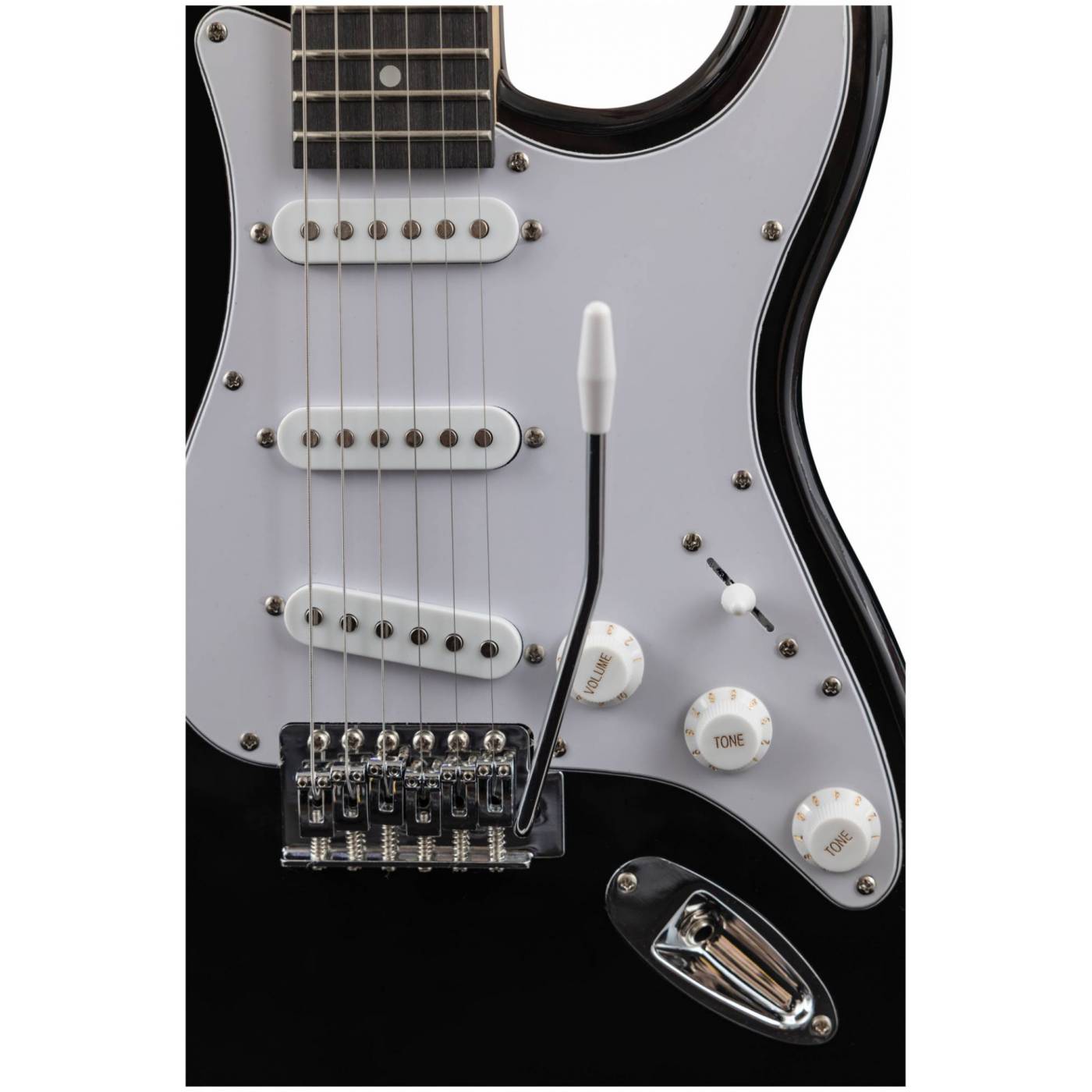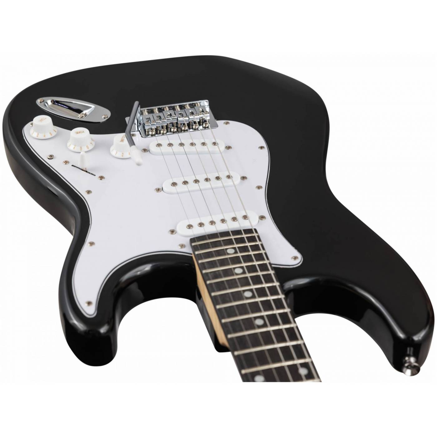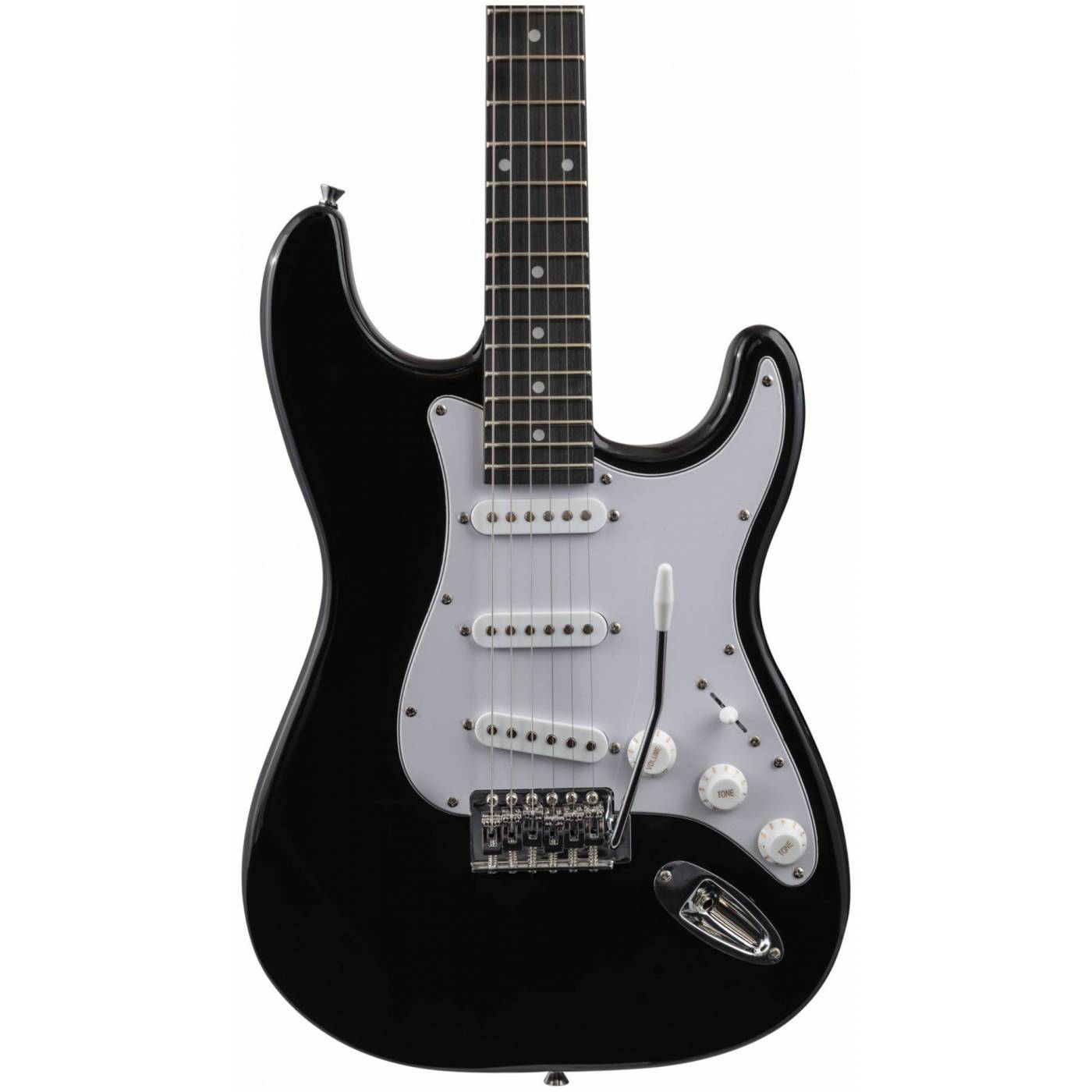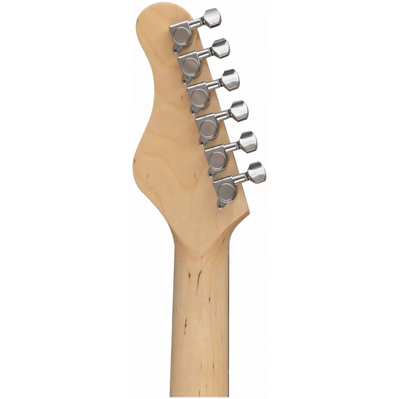 Электрогитара имеет стильный и легко узнаваемый дизайн в стиле Stratocaster, который подойдет для игры в любом жанре. Корпус гитары сделан из тополя, что обеспечивает стабильность инструмента. Гриф из клена и накладка из техновуда обеспечивают комфортную игру на электрогитаре в течение долгого времени. Конфигурация звукоснимателей: три звукоснимателя сингл(ceramic). Электроника: 1 регулятор громкости и 2 тона, 5-позиционный переключатель. Бридж: тремоло 6 болтов. Лады: 22 шт, 2.7. Мензура: 648 mm/25.5". Анкер двойного действия. Хромированная колковая механика. Колки расположены в один ряд.