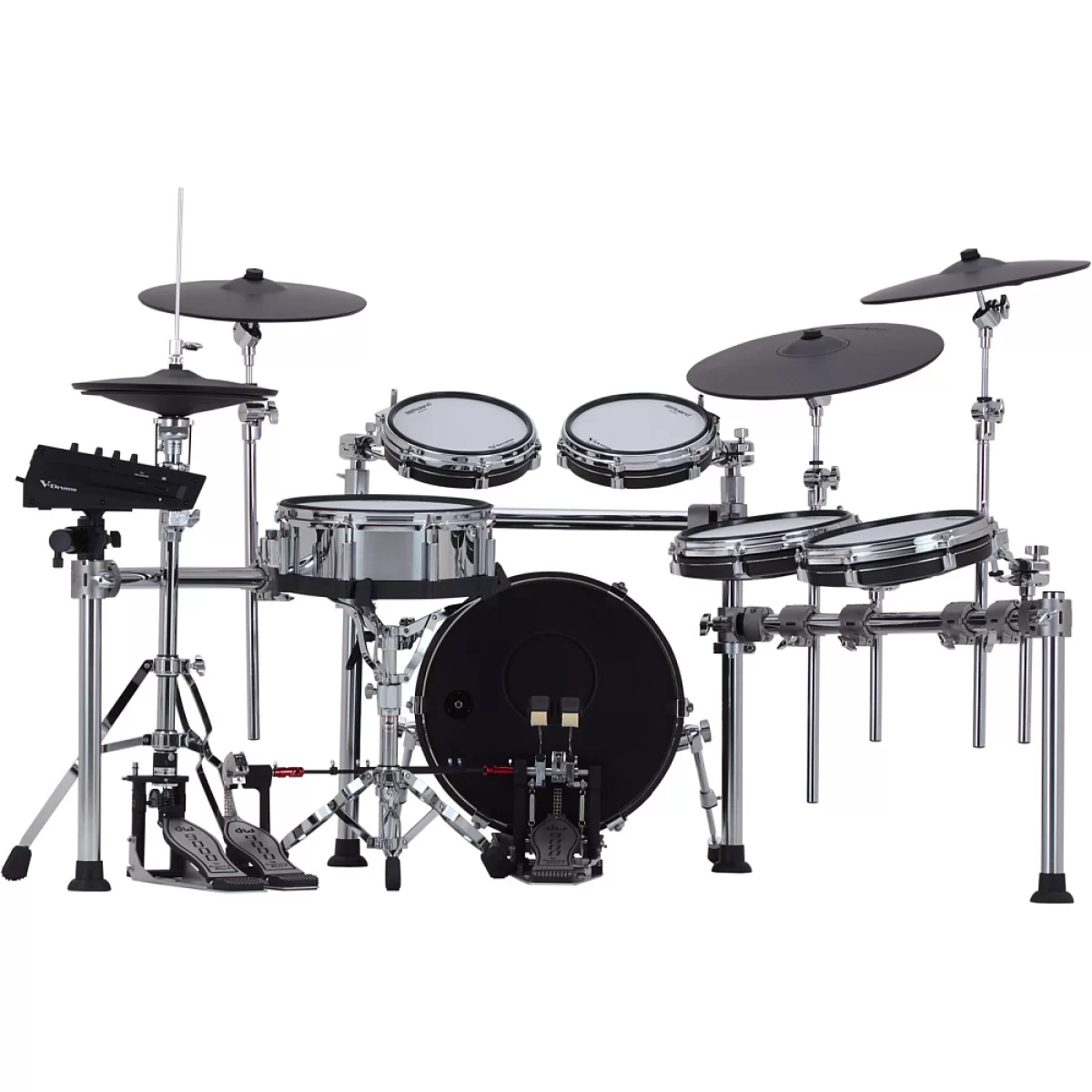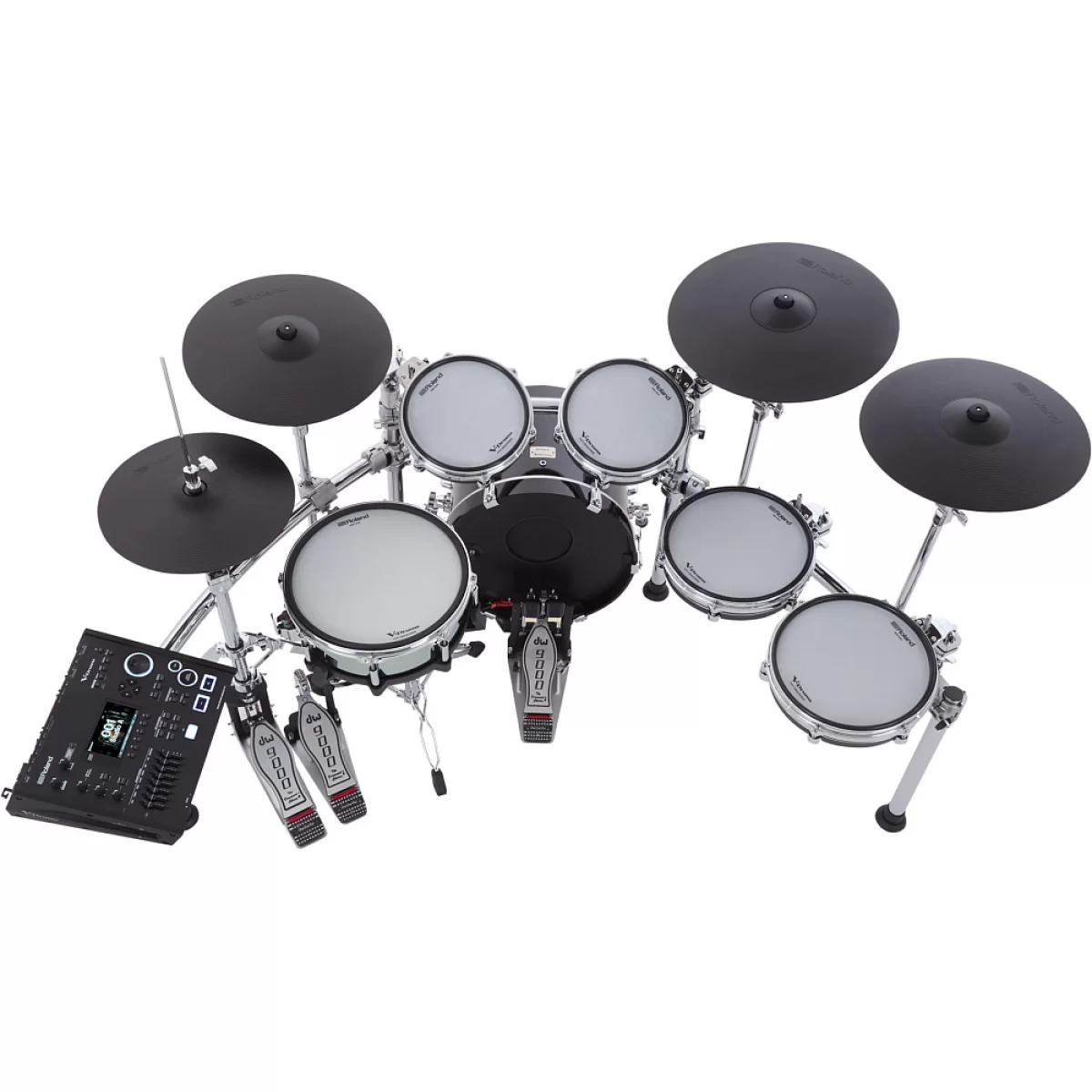 - Флагманский комплект из шести частей с недавно разработанными цифровыми пэдами snare, kick и tom