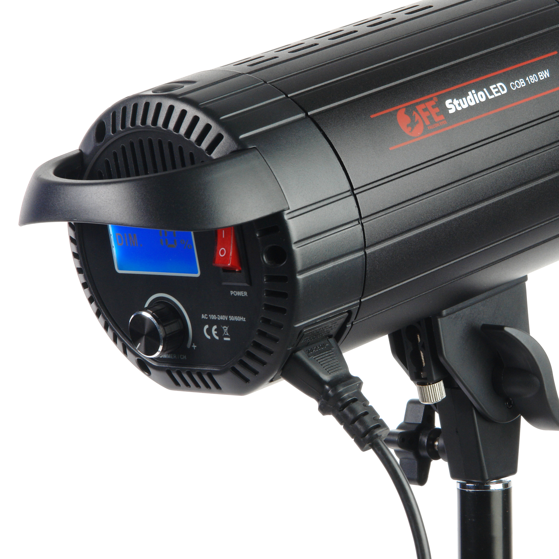 Студийный светодиодный осветитель Falcon Eyes Studio LED COB180 BW с круглой светодиодной матрицей с мощностью 180 Вт, цветовой температурой 5600 К, плавным регулированием мощности 10–100%. Применяется в студийной коммерческой фото- и видеосъемке в качестве источника основного, заполняющего или контрового света. Подходит для использования с небольшими и среднеразмерными светоформирующими насадками с байонетом типа Bowens.